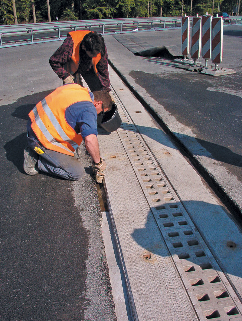 Die Reaktionsharzmörtel von Silikal sind auf Verkehrswegen vielseitig unterwegs. Das gilt für den Verguss von Stützrippen in Asphalt-Fahrbahnübergängen ebenso wie das Verkleben spezieller Bodenplatten als Leitsystem für Sehbehinderte oder für die Reparatur beschädigter Bordsteine und Stufen. Gullys werden stabilisiert, Ausbrüche repariert. Entscheidender Aspekt bei solchen Maßnahmen ist das Tempo.