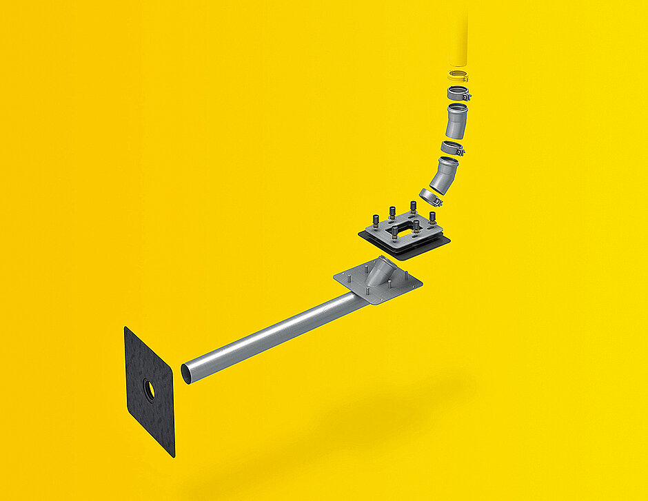 Auf der Messe zeigte Sita drei Systeme.Eine besonders einfache Lösung für die Entwässerung kommt mit der »SitaKaskade«-Durchführung. Ihr 1 000 mm langes Anschlussrohr durchdringt auch breite Attiken ohne Unterbrechung. Das große Anschlussblech der Klebeflansch-Konstruktion erleichtert und beschleunigt die Verlegung, abgekantet sogar direkt auf der Abdichtung. So kann auch bei tiefer liegenden Kernbohrungen eine saubere Ausbildung in den Eckpunkten erzielt werden.