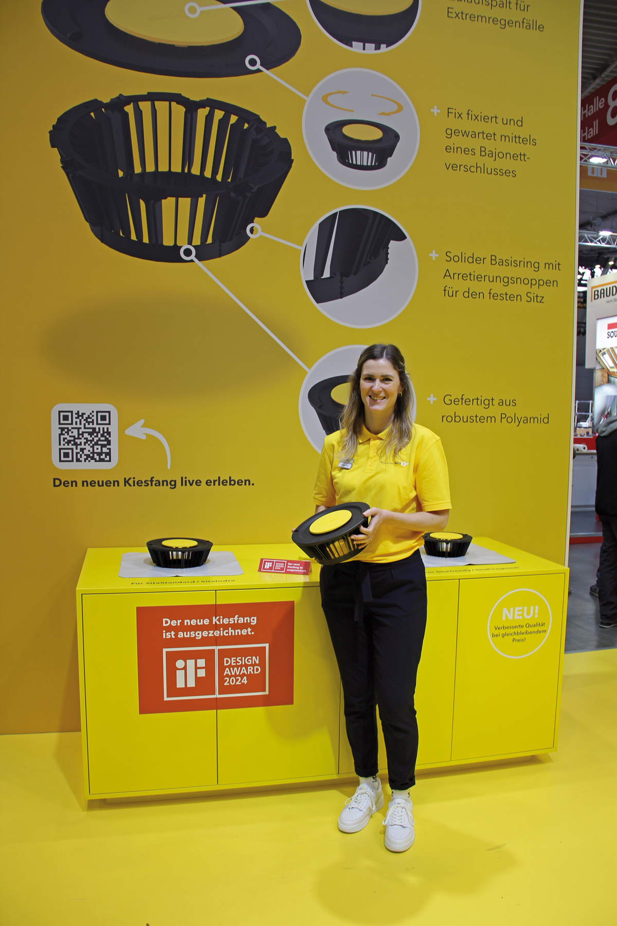 Gelb-schwarz mit einer gedeckelten wie geschlossenen wirkenden Form. Leistungsstark mit funktionellem Design, gepaart mit einer optimierten Schutzfunktion. All das bringt der Sita Hochleistungskiesfang auf das Flachdach. Hier wacht er über den perfekten Ablauf bei der Hauptentwässerung. Entwickelt in Zusammenarbeit mit Budde Burkandt Design, München, stellt der Hochleistungskiesfang laut Sita die gewohnte Formensprache auf den Kopf. Der sich nach unten verjüngende Grundkörper mit den lotrechten Streben kommt ohne Querstreben aus und verhindert abflussmindernde Wasserverwirbelungen. Kompatibel ist der Neue mit »SitaStandard«, »SitaTrendy«, »SitaIndra« und »SitaFireguard«. Seine Formensprache, störungsfreie Entwässerung, einfache Installation und Wartung überzeugten auch die Jury von iF international Forum Design. Sie zeichnete das Produkt mit dem iF Design Award 2024 aus.
