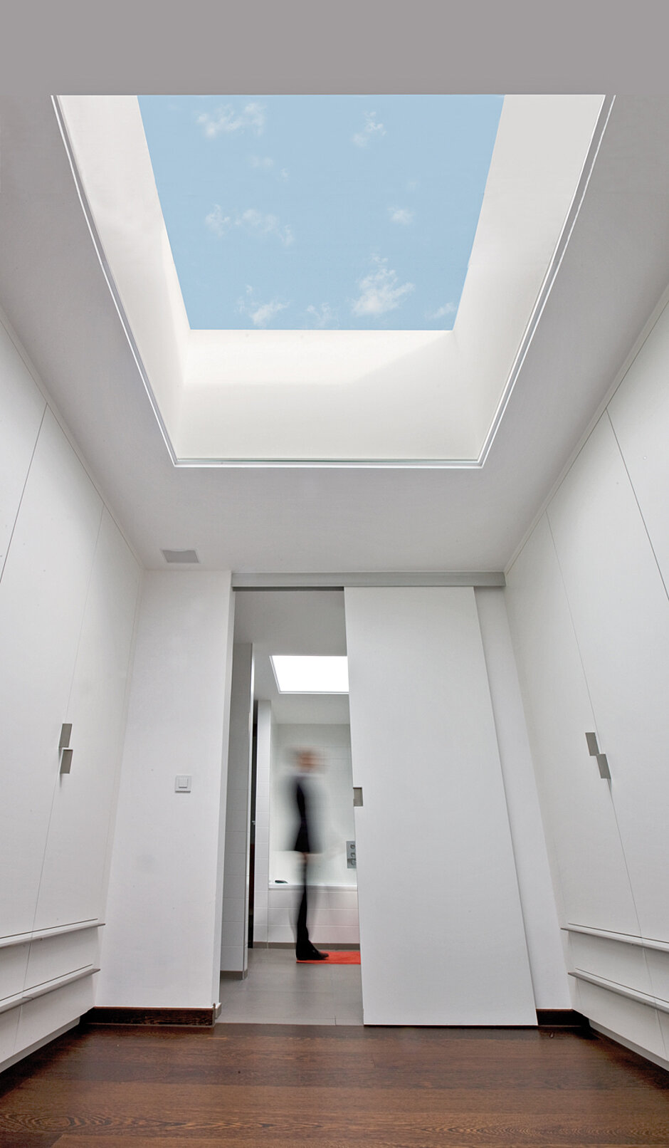 Mit den Modellvarianten der flachen Glaskuppeln »iWindow2« (Doppelverglasung HR++) und »iWindow3 Flex« (Dreifachverglasung HR+++) bietet Skylux eine technisch und ästhetisch überzeugende Tageslichtlösung für Flachdächer an. Sie sind laut Hersteller durchsturzsicher, luft- und wasserdicht, einbruchsicher und nahezu pflegefrei. Die Glaskuppeln verfügen über gute Dämmwerte durch den isolierenden PVC-Rahmen und die Sicherheitsverglasung und bieten einen hohen Tageslichteinfall. Für die Integration in Flachdächer mit einem Neigungswinkel bis 15 Grad verfügen sie über einen kompakten PVC-Rahmen mit einer geringen Rahmenhöhe von 28 mm (»iWindow2«) und 55 mm (»iWindow3«).