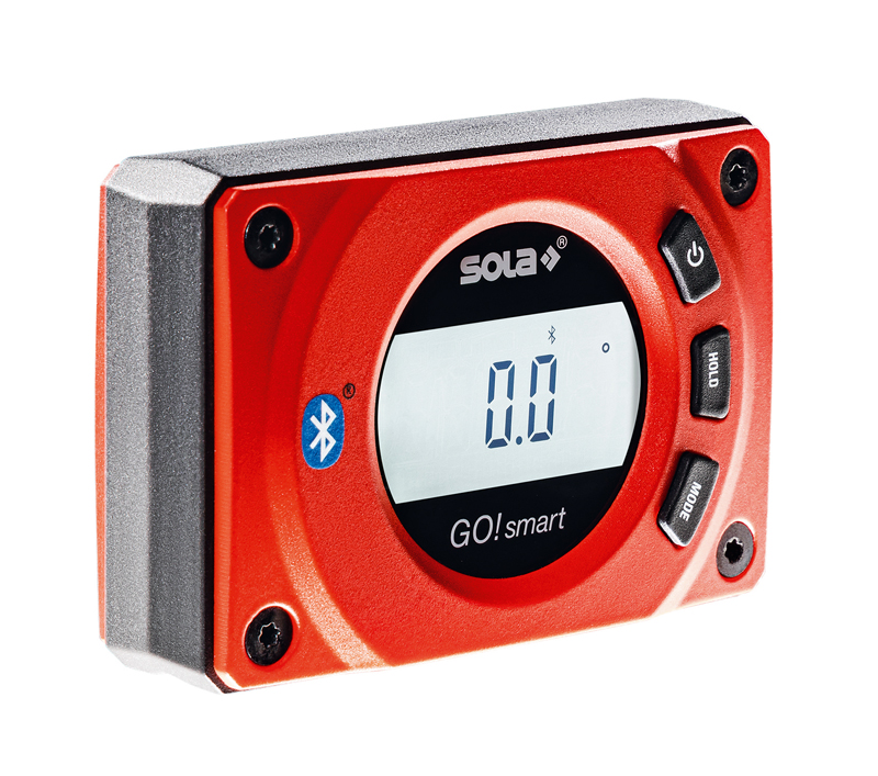 Dank der starken Haftmagnete und der integrierten V-Nut an der Standfläche hält die »GO! smart« selbst auf Rohren sicher ohne zu verrutschen. Bei Umschlagmessungen dreht sich die digitale Anzeige auf dem beleuchteten Display automatisch. Mit einer Länge von nur acht Zentimetern findet das kompakte Gerät in jedem Werkzeugkoffer Platz. Noch mehr Funktionen verspricht die App »Sola Measures« – sie verbindet die »GO! smart« kabellos via Bluetooth mit dem mobilen Gerät. So können z. B. Messwerte in Echtzeit auf das mobile Gerät übertragen oder Funktionen am Messgerät über die App gesteuert werden. Echtzeitdaten wie Datum und Uhrzeit werden mit jeder Messung automatisch im Messwertspeicher erfasst. Zusätzlich können zu jedem Messwert Notizen, Fotos und Videos hinzugefügt werden. Mit dem Foto-Overlay Export kann die reale Arbeits- bzw. Messsituation mit dem mobilen Gerät fotografiert werden, wobei die Echtzeitdaten wie Messwert, Datum und Uhrzeit direkt auf dem Foto angezeigt und gespeichert werden. So können Messergebnisse schnell mit dem Team geteilt werden. J
