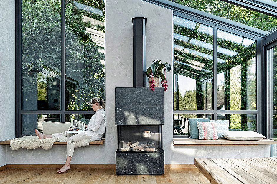 Neben wärmegedämmten Wintergärten stehen Glashäuser, als Kombination aus Terrassendach und senkrechter Verglasung, bei Bauherren nach wie vor hoch im Kurs. In Nürnberg zeigte Solarlux exemplarisch das Terrassendach »Acubis«, das sich mit Schiebe- und Schiebe-Dreh-Elementen der noch jungen »Proline«-Systemfamilie zum Glashaus wandelt. Mit »Proline« hat Solarlux 2023 einen Systembaukasten auf dem Markt lanciert, der zahllose Möglichkeiten bietet, Leistungsmerkmale und Produkteigenschaften auf die jeweilige Bauaufgabe abzustimmen. Gleichzeitig gelang es – für noch mehr Transparenz – die Profilansichten um ein Drittel zu reduzieren.