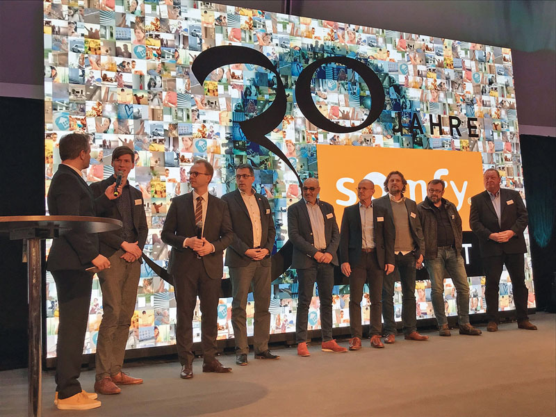Alle drei Jahre veranstaltet Automationsspezialist Somfy einen Expertentag für besonders qualifizierte Fachpartner. Die Resonanz war auch 2019 gut: Im März kamen rund 400 Gäste in München zusammen, um sich aus erster Hand über die strategische Ausrichtung des Unternehmens, Perspektiven des Netzwerks und aktuelle Entwicklungen rund ums vernetzte Wohnen zu informieren. Gleichzeitig feierte man das 30-jährige Jubiläum der gemeinsamen Partnerschaft. In seiner Eröffnungsrede betonte Somfy- Geschäftsführer Jean-Luc Sarter die Bedeutung eines starken und dynamischen Expertennetzwerks angesichts der aktuellen Megatrends Digitalisierung, globale Vernetzung, Urbanisierung und Klimawandel. Um den zahlreichen Herausforderungen zu begegnen, setze Somfy auf eine Zwei-Wege-Strategie. Einerseits gehe es um eine Erweiterung des Produktportfolios, andererseits um die Erschließung neuer Vertriebskanäle. Entscheidend sei dabei die Preiskohärenz. Als Innovationsführer gehe es Somfy darum, die Marktchancen seiner Fachpartner zu stärken. Denn das Fachhandwerk bilde die entscheidende Stütze des Unternehmens: »Mit unserem Expertenprogramm sind wir auf einem sehr guten Weg.« Andreas Schnell, Leiter des Somfy-Expertennetzwerks, unterstrich dessen Bedeutung mit beeindruckenden Zahlen. So wurden in den zurückliegenden achtzehn Monaten über 50 Online-Multishops für Gold-Experten realisiert. Die Umsetzung und Pflege sind im Rahmen des Somfy Expert-Programms kostenlos. Des Weiteren fanden bereits knapp 150 Unternehmenscoachings und professionelle Fotoshootings statt – wichtige Maßnahmen, um sich als Fachbetrieb nicht nur inhaltlich, sondern auch optisch als starke lokale Marke zu präsentieren. Die gemeinsame Partnerschaft charakterisierte Andreas Schnell als Prozess der stetigen Weiterentwicklung: »Wir wollen immer wieder aufs Neue die Endkunden begeistern.