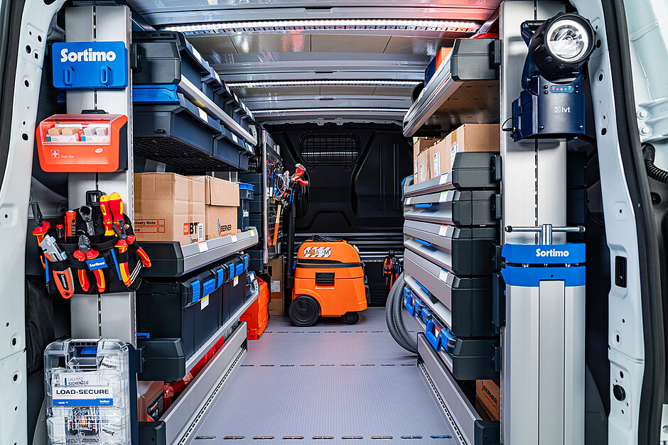 Mit dem »One Click«-System beweisen Sortimo und Volkswagen Nutzfahrzeuge, wie partnerschaftliche Entwicklung zu echten Mehrwertlösungen führt – passgenau auf den Bedarf des Handwerks, des Servicebereichs, für Grocery und der Logistik zugeschnitten. Die gemeinsame Produktentwicklung, abgestimmt auf die VW-Nutzfahrzeugplattformen, sorgt für maximale Kompatibilität und Verlässlichkeit ab Werk.