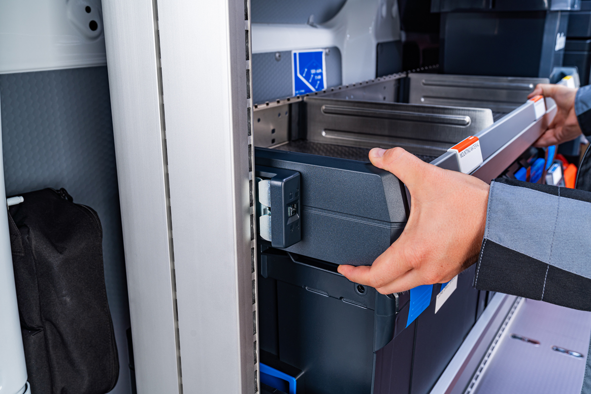 Der modulare Aufbau ist nicht nur praktisch, sondern auch ökologisch sinnvoll: Die Regalinhalte lassen sich beim Fahrzeugwechsel einfach mitnehmen, das Grundregal verbleibt im Fahrzeug und kann neu genutzt werden. Damit verlängert sich der Lebenszyklus der Ausstattung und der Ressourcenverbrauch sinkt.