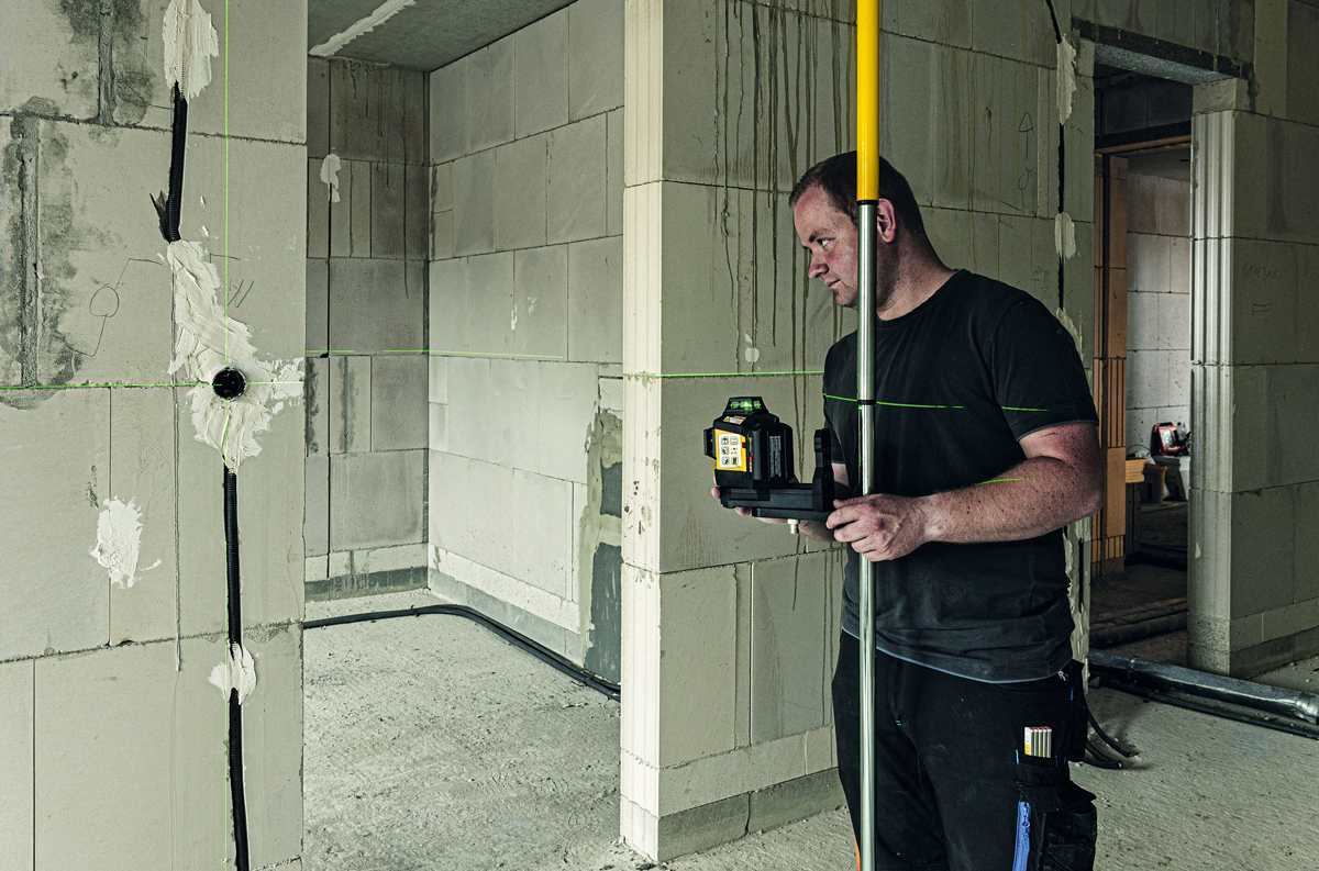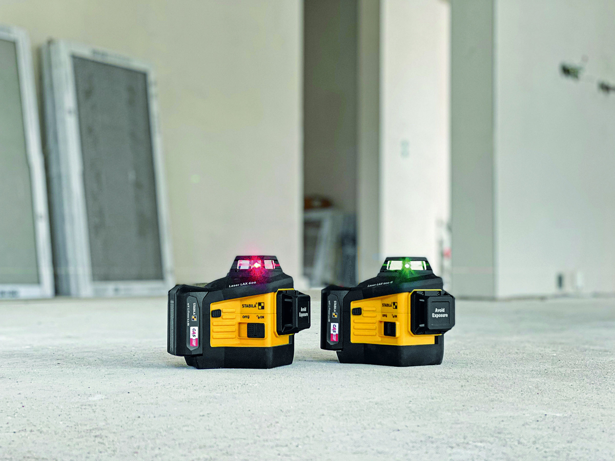 Als vielseitige und einfach handhabbare Messwerkzeuge für Anwendungen im Innenbereich hat Stabila die neuen, akkubetriebenen Multilinien-Laser »LAX 600« und »LAX 600 G« konzipiert. Drei 360°-Linien ermöglichen das effiziente Nivellieren in der horizontalen und vertikalen Position zur gleichen Zeit, zwei rechtwinklig zueinanderstehende vertikale Linien eine Raumaufteilung in viermal 90°. Ergänzt wird dies durch ein Lot nach oben und unten, erzeugt durch den Schnittpunkt der Vertikal-Linien, sowie eine Horizontal-Linie für exakte Höhenübertragungen und präzise Layout-Arbeiten.