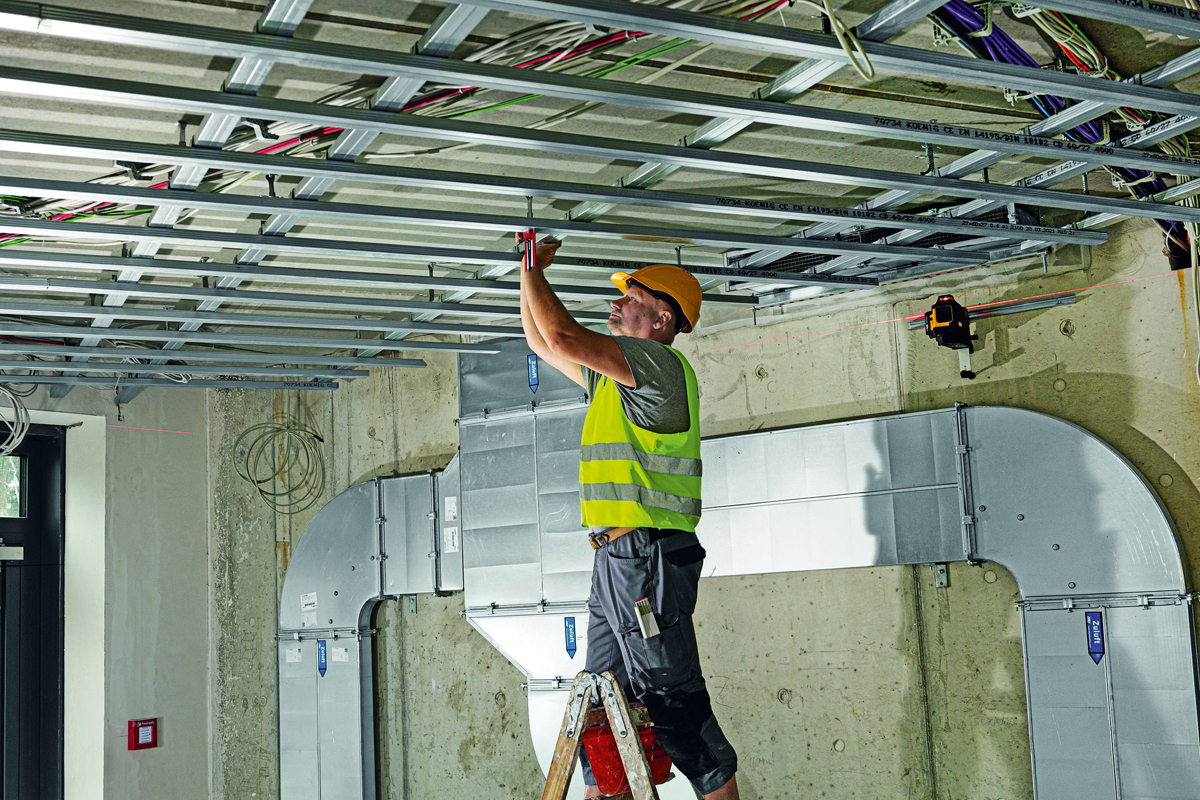 Zum Lieferumfang der neuen Multilinien-Laser von Stabila gehören eine Zielplatte mit Magnethalterung und Fadenkreuz zum Ausrichten des Lasers auf einen Zielpunkt – bei abgehängten Decken kann die Zielplatte mit der Magnethalterung an Metallschienen befestigt werden. Außerdem enthalten ist die flexibel positionierbare Universalhalterung »SUB 10« und die montierbare Wandhalterung »SWB 10«. Zur Aufbewahrung und zum Transport dient ein Tragekoffer. J