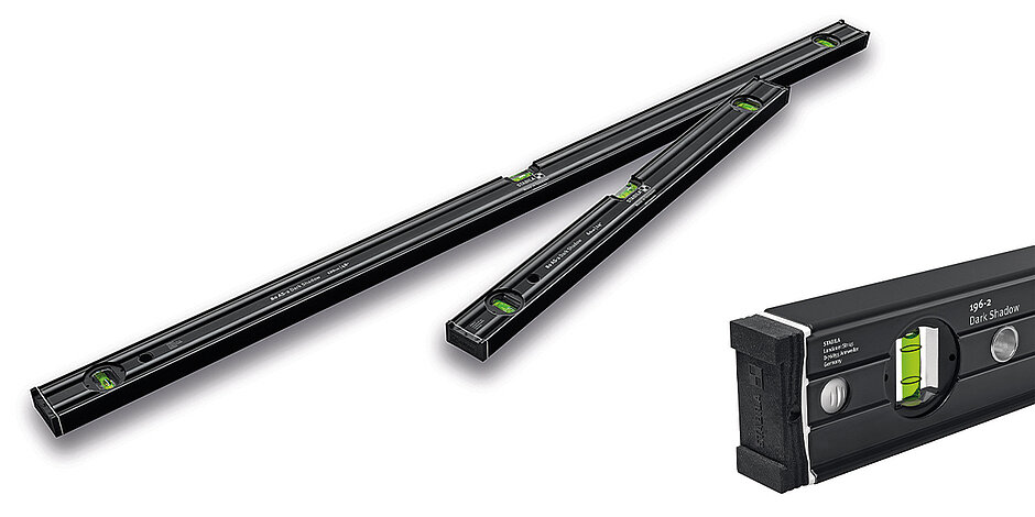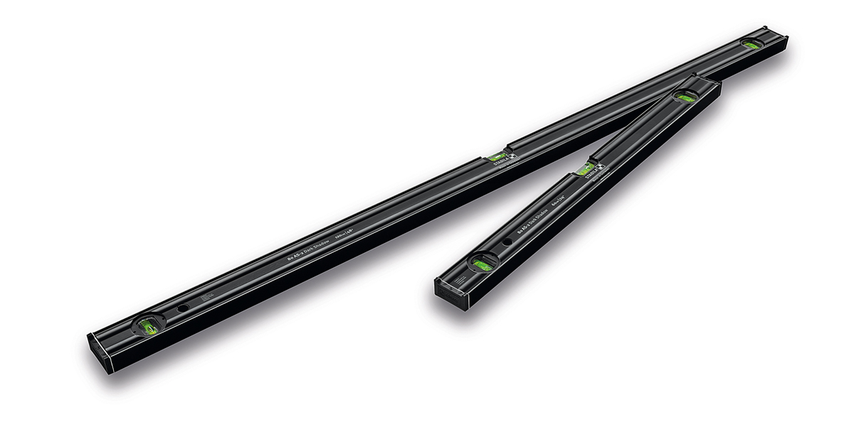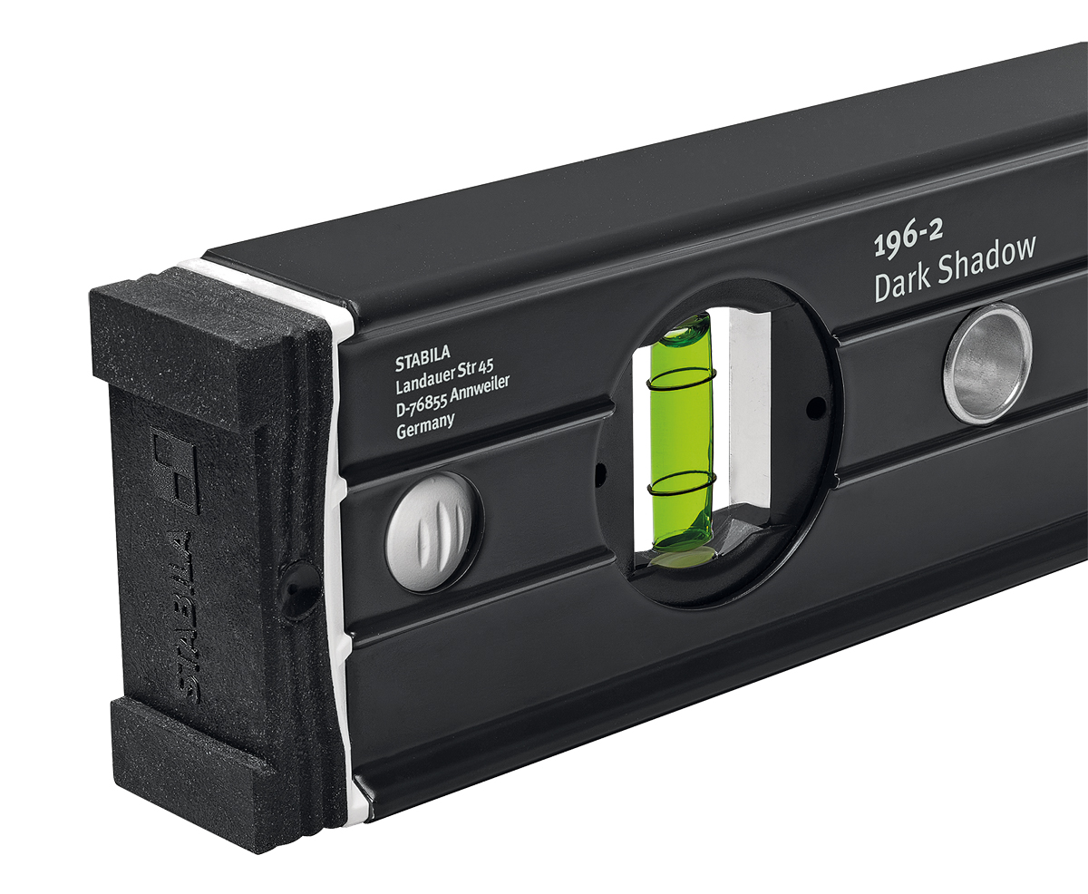 Für Messungen in Normal- und Umschlagposition bei Maurer- und Zimmererarbeiten, im Holz- und Stahlbetonbau, beim Fensterbau, Straßenbau, Garten- und Landschaftsbau empfiehlt sich die Wasserwaage Serie »196-2« von Stabila. Das Jubiläums-Set »Dark Shadow« umfasst die Längen 61 cm und 122 cm.