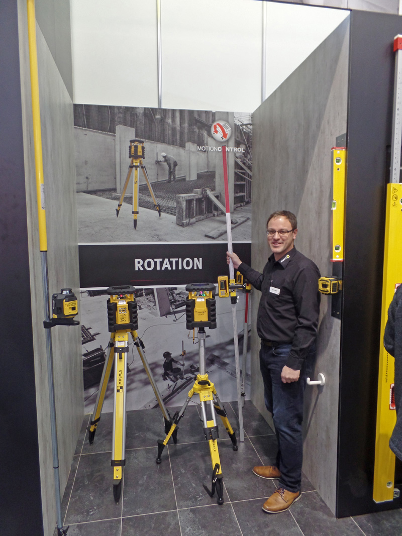 Auf dem Messestand von Stabila bei der BAU 2019 war ein neuer Rotationslaser in aller Munde: Rico Ohlinger, Verkaufsgebietsleiter Mitte bei Stabila, präsentierte den interessierten Fachbesuchern den »LAR 300«, der laut Hersteller nicht nur einfach zu bedienen sondern auch schnell einsatzbereit ist: Mit seiner Selbstnivellierung ist der Laser innerhalb von nur zehn Sekunden einsatzbereit, auf Knopfdruck kann es losgehen. Integrierte LEDs zeigen beim Positionieren des Lasers, wenn sich dieser außerhalb des Nivellierbereichs befindet, und blinkende LEDs machen auf Erschütterungen aufmerksam, die auf Baustellen an der Tagesordnung sind. Auch dafür hat der »LAR 300« eine Lösung: Vibrationen werden dank automatischer Nachnivellierung bis zu einem bestimmten Grenzwert automatisch ausgeglichen.