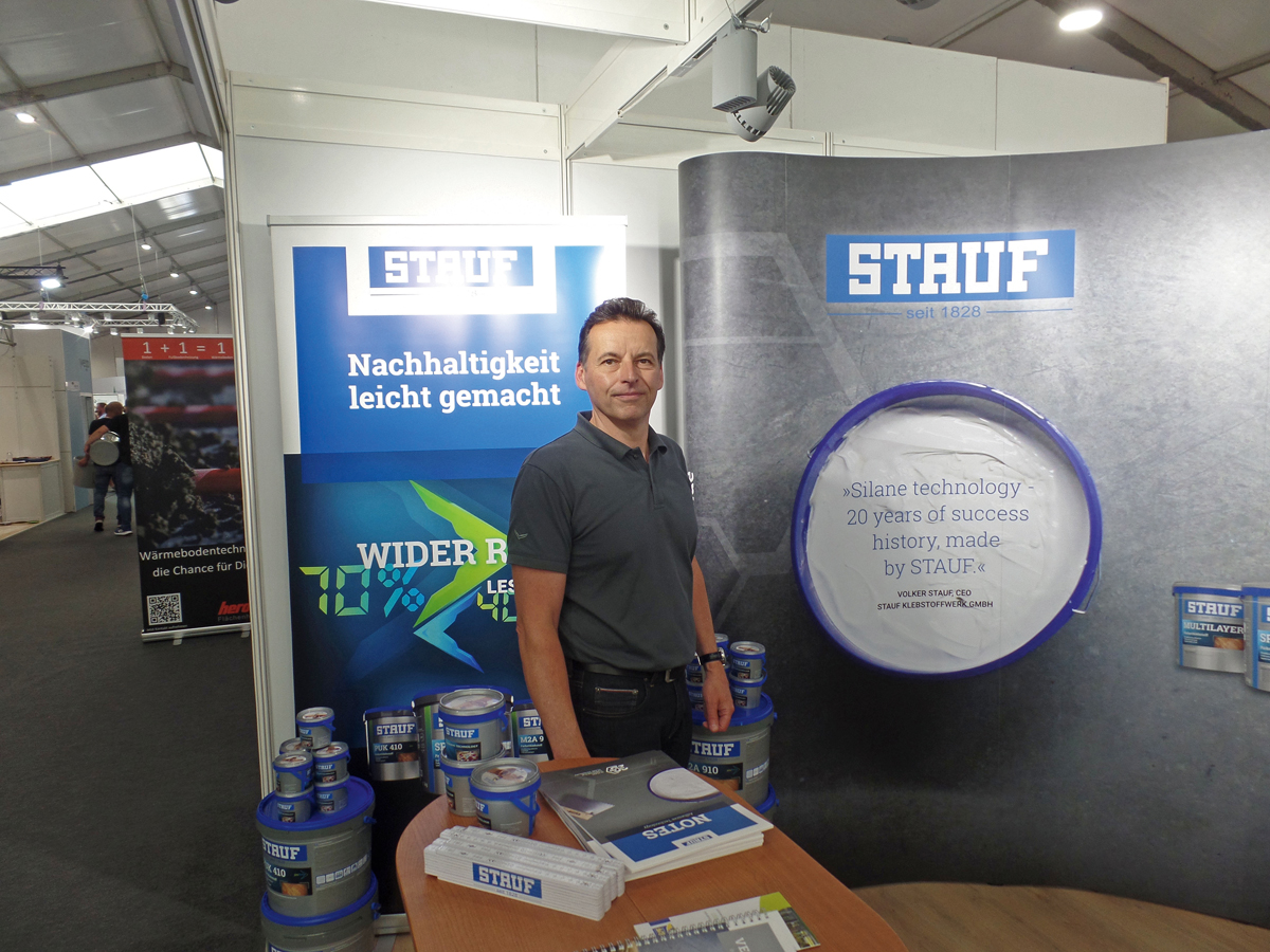 »Dank bester Organisation durch die Bayerische Bauakademie und familiärer Atmosphäre auf der Messe blieb genügend Zeit für intensive und ausführliche Gespräche. Wir konnten die EPF nutzen, um neue Kontakte aus der Estrichbranche zu gewinnen«, fasst Peter Dietrich, Vertriebsleiter bei Stauf, die Zeit auf der EPF zusammen. Aufgrund der hohen Besucherdichte aus der Estrichbranche verlagerte sich der Fokus am Stand des Parkettklebstoff-Pioniers auf die innovativen Lösungen zur Estrichsanierung, die Stauf neben nachhaltigen Klebstoffen auf der EPF präsentierte. Nicht verwunderlich, dass dieses Thema die Besucher interessierte – schließlich stehen auch erfahrene Handwerker oftmals vor dem Problem, den Aufwand für die Sanierung von Böden im Vorfeld nur schwer einschätzen zu können. Stauf bietet mit der tief eindringenden Epoxidharz-Grundierung »WEP 180« eine echte Allround-Lösung für eine effiziente und zeitsparende Estrichsanierung an. Mit extrem hoher Penetrationsfähigkeit von bis zu 100 Prozent festigt die »Stauf WEP 180« labile Untergründe zuverlässig.