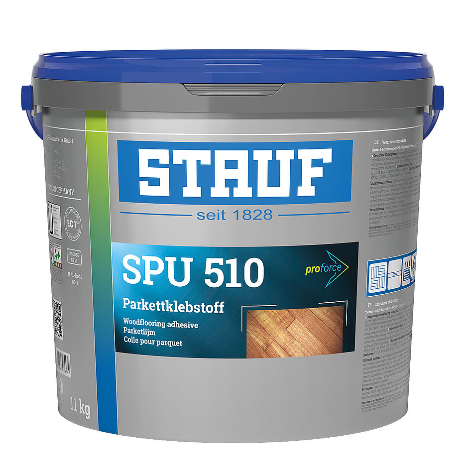 Die »Proforce«-Linie besteht aus drei Produkten, wobei der angesprochene »SPU 510« von Stauf als Alleskönner im Bereich Parkettklebstoffe bezeichnet wird, weil er für alle Arten von Parkett und auf allen parkettgeeigneten Untergründen ohne Grundierung einsetzbar ist. Carsten Bockmühl nennt aber noch weitere Vorzüge: »Der ›SPU 510‹ zeichnet sich zudem durch herausragende technische Eigenschaften aus, wie z. B. eine sehr geringe Dichte, exzellente Streichbarkeit, einen guten Riefenstand sowie eine hohe Scherfestigkeit. Zudem ist unser Top-Produkt aus der Reihe der Silanklebstoffe sehr emissionsarm und deutlich leichter als vergleichbare Produkte. Die Direktverklebung auf Zementestrichen mit bis zu 4 cm-% als Dampfbremse ist mit unserem Stauf Zahnspachtel Nr. 12 ebenfalls möglich. Also ein wirklicher Alleskönner!«