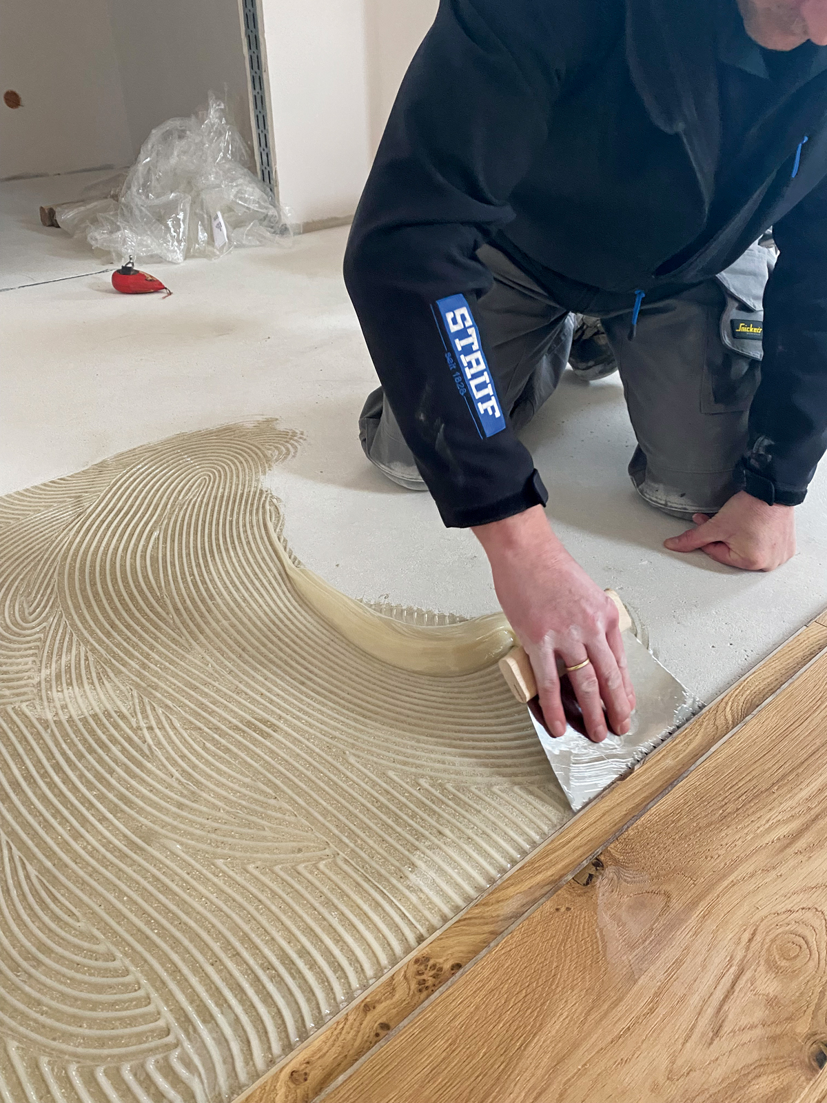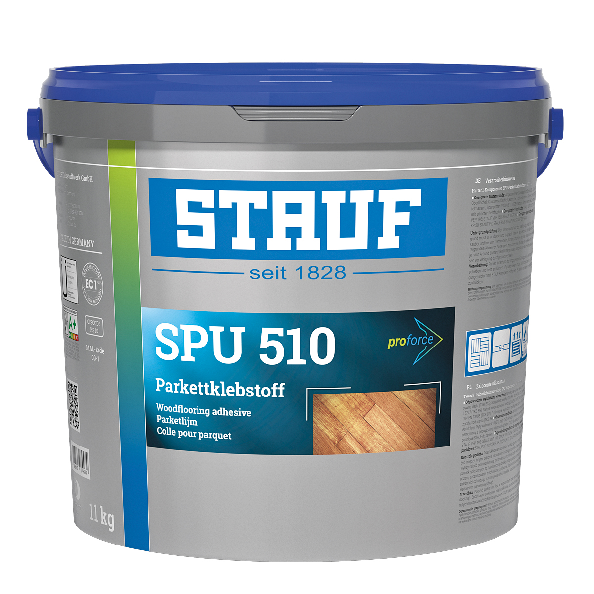 Als Parkettklebstoff setzt der »SPU 510« die über 20-jährige Silan-Erfolgsgeschichte von Stauf fort. Der »SPU 510« ist das neue Top-Produkt aus der Reihe der Silanklebstoffe. Der SPU-Parkettklebstoff ist als Teil der neuen »ProForce«-Produktlinie von Stauf der kompromisslose Alleskönner für alle Arten von Parkett, so der Hersteller. Der Klebstoff kann auf allen parkettgeeigneten Untergründen ohne Grundierung eingesetzt werden. Lediglich 11 kg bringt der Eimer aus Recyclatkunststoff auf die Waage. Der füllstofffreie Klebstoff ist deutlich leichter als vergleichbare Produkte und verfügt laut Stauf über eine sehr gute Streichbarkeit. Auch besonders große Dielenformate (10:1 oder breiter) hält er in Form. Die Direktverklebung auf Zementestrichen mit bis zu 4 CM-Prozent als Dampfbremse ist ebenfalls möglich. J