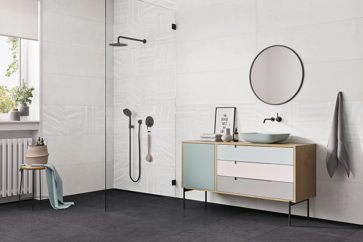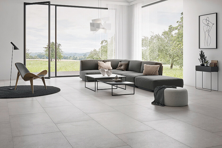 Die Fliese eignet sich für alle Räume , als rektifizierte Fliese ermöglicht »06 Jive« minimale Fugen und somit eine modern homogene Fläche mit urbanem Chic aus Einheiten im Format 40 x 120 x 0,6 cm. Mit dem Dekor aus schwungvollen, aber zurückhaltenden Pinselstrichen schafft »06 Jive« den Twist von reiner Klarheit zu leicht integrierter Bewegung, die den rhythmischen Spirit und die optische Leichtigkeit der Fliese unterstreichen soll. Nicht weniger Modernität, aber etwas mehr Sinnlichkeit verleiht »06 Jive« dem Raum als rektifiziertes 6 mm starkes Feinsteinzeug im Schiefer-Stil in den Formaten 60 x 120 cm sowie 60 x 60 cm und einer Stärke von 6 mm, R10 / B. In ihrer Farbgebung von Hellgrau über Grau bis Anthrazit kann sie den räumlichen Gegebenheiten und Lichtverhältnissen angepasst werden. J