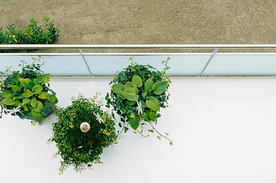 Schäden an Balkonbrüstungen sollten ebenfalls umgehend repariert werden. Abplatzungen lassen sich einfach und schnell mit »StoCrete SM« beheben. Beschichtet mit einem Oberflächenschutzsystem, z. B. »StoConcrete Protect V«, ist die Brüstung wieder dauerhaft vor Witterung und Schadstoffen geschützt und kann zugleich farbig gestaltet werden.