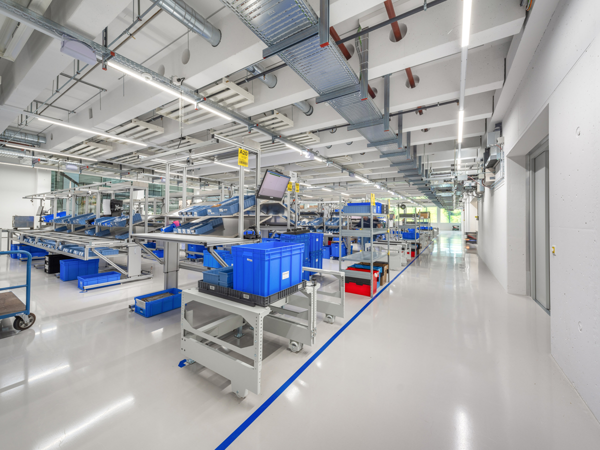 In diesem Sommer eröffnete Thermoplan sein fünftes, »unique« genanntes Werk und verdoppelte damit die Produktionskapazität in Weggis mit zusätzlichen Produktionsflächen, Logistikanlagen und Büroräumen, eingerichtet nach den neuesten Standards. Um die empfindlichen Geräte-Komponenten zu schützen, lautete die Vorgabe für die Böden in den Produktions- und Montagehallen – rund 6 000 m² –, diese zuverlässig elektrostatisch ableitfähig auszubilden.Diese Anforderung erfüllt das elektrisch leitfähige Beschichtungssystem »StoFloor ESD KU 614« von Stocretec – mit hervor- ragenden Leitwerten auch noch bei einer relativen Luftfeuchtigkeit von 12 Prozent. Für sicheres Begehen wurde der Boden mit der Rutschhemmklasse R10 ausgestattet. Eine zusätzliche Versiegelung ist nicht erforderlich. Das spart Zeit beim Einbau und trägt neben den guten Verlaufseigenschaften und dem geringen Verbrauch zur hohen Wirtschaftlichkeit des Systems bei.