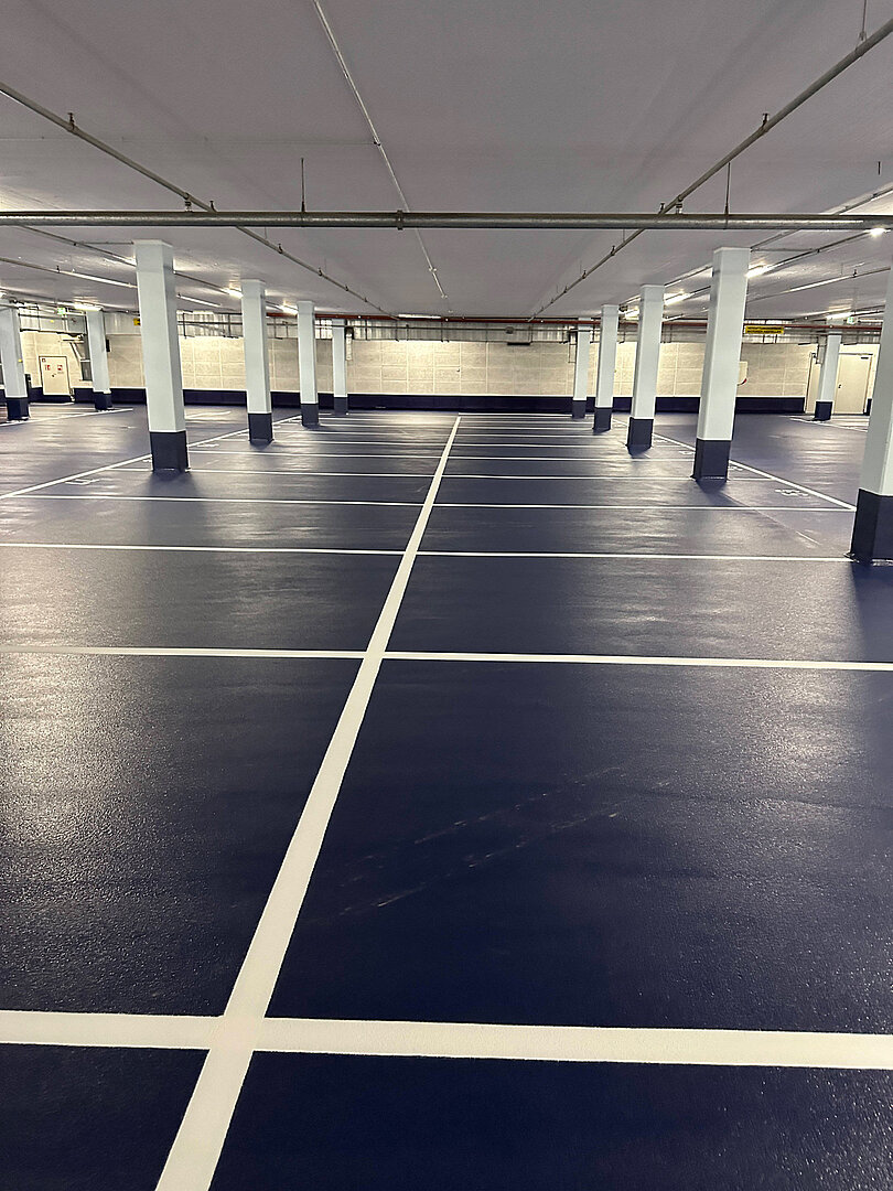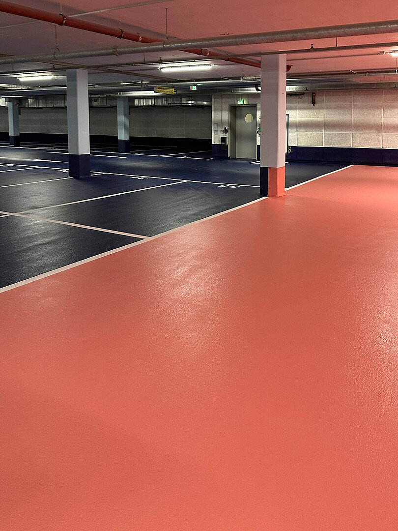 Probleme mit Feuchtigkeit führten zu gravierenden Schäden im Untergeschoss der Tiefgarage der Kaufmännischen Krankenkasse in Hannover. Zudem stellte der beauftragte Planer zahlreiche Risse im Untergrund und Korrosionsschäden fest, besonders im Sprüh- und Sprühwasserbereich. Die Tiefgarage sollte daher instand gesetzt und mit einem langlebigen Oberflächenschutzsystem versehen werden.