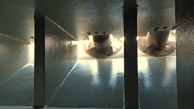 Im Rahmen der Instandsetzung der kommunalen Kläranlage »Salierweg« der Stadt Bonn erhielten das Pumpwerk und der anschließende Einlaufkanal bis zum Sand- und Fettfang einen zusätzlichen Oberflächenschutz. Durch die geschlossene Bauweise sind diese Teile der Anlage nicht nur direkt durch betonaggressive Klärwässer belastet. Zusätzlich entsteht im Gasraum oberhalb des Wasserspiegels ein sehr starker chemischer Angriff auf den Beton durch biogene Schwefelsäure (Expositionsklasse XWW4*). Nachdem ein Zugang zu dem geschlossenen System geschaffen war, bestätigte sich die Ahnung des sachkundigen Planungsbüros, dass eine einfache Betoninstandsetzung keinen dauerhaften Schutz biete. Das DWA Merkblatt M 211 beschrieb bereits im Jahr 2008, dass in solchen Bereichen ein zusätzlicher hochbeständiger Oberflächenschutz notwendig ist. Weiterhin fordert das Merkblatt: »Wichtig ist, dass aufeinander abgestimmte Instandsetzungssysteme eines Herstellers verwendet werden.« Aus diesem Grund entschieden sich Bauherr, Planer und Fachverarbeiter für die Systemlösungen von StoCretec.