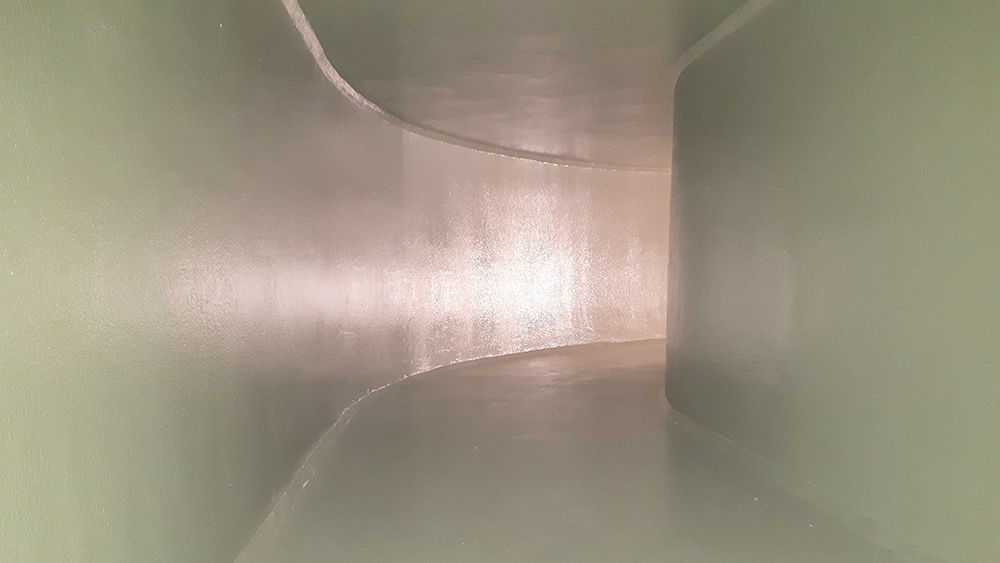 Als Oberflächenschutz gegen biogene Schwefelsäure ließ StoCretec bereits 2006 die Grundierung »StoPox 452 EP« in Kombination mit »StoPox KU 180« erfolgreich prüfen (Anforderungen gemäß DIN 19573 für die Exposition XWW4). Die hydrophile Formulierung von »StoPox 452 EP« sorgt laut Hersteller für sehr gute Haftung auf feuchten Untergründen und beschleunige somit die Arbeiten. Das anschließend zweifach aufgebrachte Epoxidharz »StoPox KU 180« versiegelt die Oberflächen dauerhaft und lässt kein angreifendes Medium an den Beton.