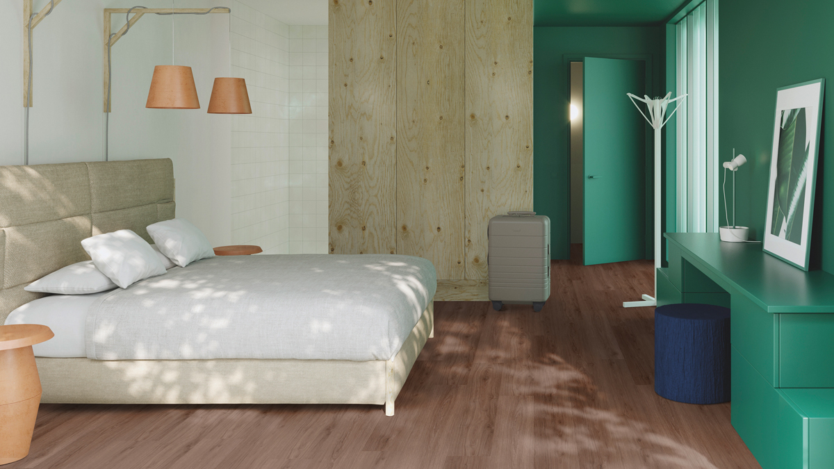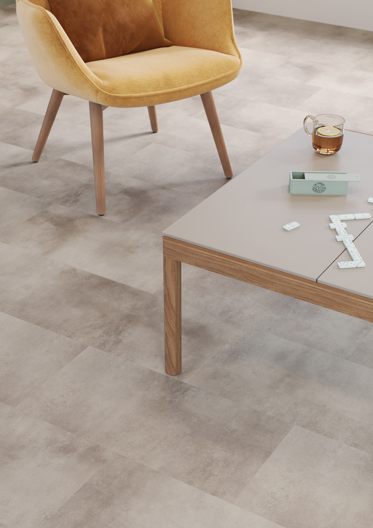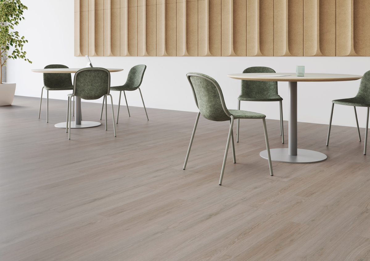 Mit »iD Evolution« präsentiert Tarkett einen elastischen Bodenbelag, der sich zu 64 Prozent aus Mineralien zusammensetzt. Diese werden aus den natürlichen Ressourcen Kreide und Brucit gewonnen. Weiterhin besteht die Kollektion aus Polypropylen, einem stoßfesten Material, das häufig bei der Herstellung von Autostoßstangen zum Einsatz kommt. Der neue Designboden eignet sich speziell für stark genutzte Räume und passt sich flexibel an verschiedene Einsatzbereiche an. Ob dynamische Arbeitsplätze und Bildungsstätten, ausgiebig frequentierte Bereiche in Ladenbau und Gastronomie oder Hotelzimmer sowie Räume in der Seniorenpflege – »iD Evolution« ist laut Tarkett vielseitig einsetzbar und stellt mit seiner hohen Funktionalität eine adäquate Alternative zu PVC-basierten Produkten dar.