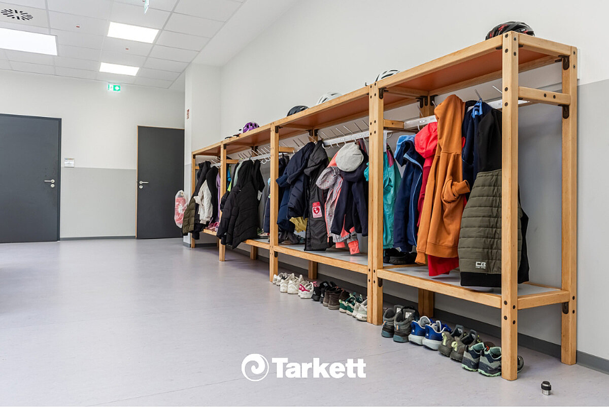 Die Grundschule am Lindhof in Syke wird derzeit in mehreren Bauabschnitten im laufenden Bestand saniert. Der erste Bauabschnitt wurde bereits 2023 mit knapp 540 m² abgeschlossen; Mitte 2024 folgte der zweite Bauabschnitt mit gut 595 m². Im Oktober 2024 kam es durch ein undichtes Dach zu einem Wasserschaden mit anschließender Brandentwicklung. Tarkett unterstützte umgehend bei der Demontage und Rückführung der beschädigten Böden. So hat Tarkett die rund 250 m² beschädigten Beläge ausgebaut und über sein Rücknahme- und Recyclingprogramm »ReStart« zurückgenommen. Bei der Verlegung wurde der Verschnitt gesammelt und ins italienische Tarkett-Werk nach Narni zum Closed-Loop-Recycling geschickt. Hier wurde die Juteträgerschicht von der Linoleummasse getrennt und vor Ort als Heizmaterial verwendet, während die Linoleummasse zu Linoleumpulver mikronisiert wurde, das dann wieder als hochwertiges Rohmaterial für die Herstellung von neuem Tarkett-Linoleum verwendet wurde. Mit diesen Maßnahmen unterstützt Tarkett auch das