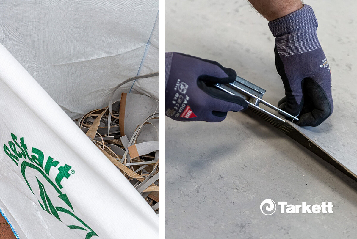 Bei der umweltschonenden Produktion wird bei Tarkett von Anfang an darauf geachtet, dass möglichst wenig Abfall anfällt und die Kohlenstoffemissionen geringgehalten werden. Die Verschnitte der Produkte sind recyclebar, der Recyclinganteil beträgt in einigen Bereichen bis zu 55 Prozent – so werden Abfall und CO₂-Fußabdruck noch weiter reduziert. Jeder Bodenbelag weist den Anteil an recyceltem Material auf, der in von Dritten geprüften Umweltproduktdeklarationen (EPDs) dokumentiert wird.