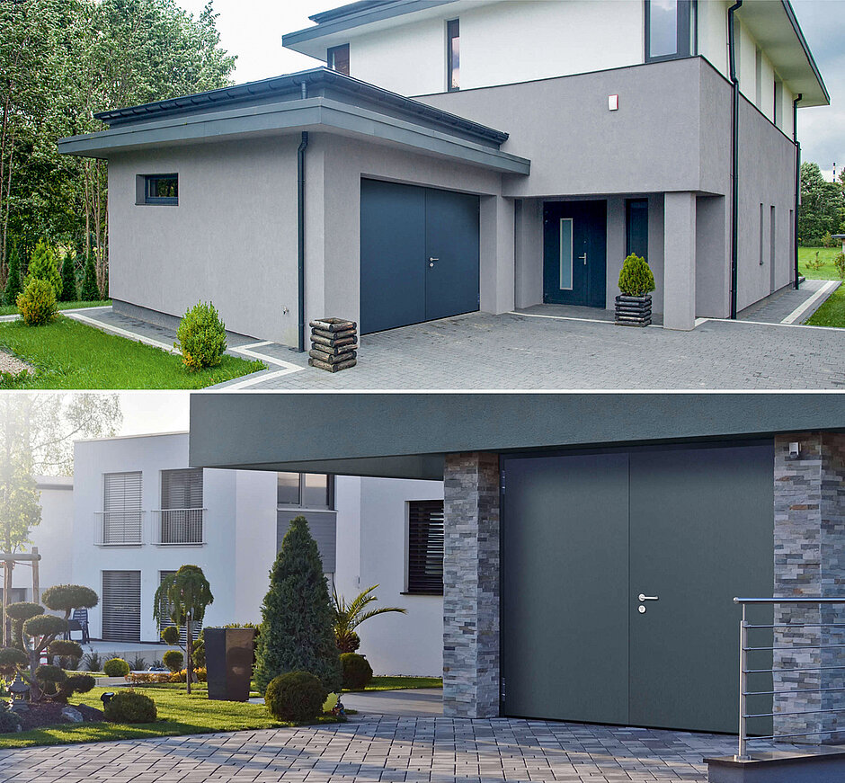 In vielen Garagen ist es eng. Um hier den begrenzten Platz nicht zusätzlich durch das Tor zu verknappen, hat Teckentrup ein Drehflügeltor entwickelt, das wie eine Tür mit zwei Flügeln nach außen öffnet. So bleibt der Innenraum frei nutzbar. Diese Lösung eignet sich daher besonders bei der Renovierung kleinerer Garagen und ist praktisch, wenn sie häufig betreten werden – beispielsweise, wenn sie als Lager oder Werkraum fungieren. Der Drehflügel lässt sich schneller und einfacher öffnen als ein Tor, das nach oben öffnet – und bei Bedarf steht dennoch die gesamte Breite als Öffnung zur Verfügung.