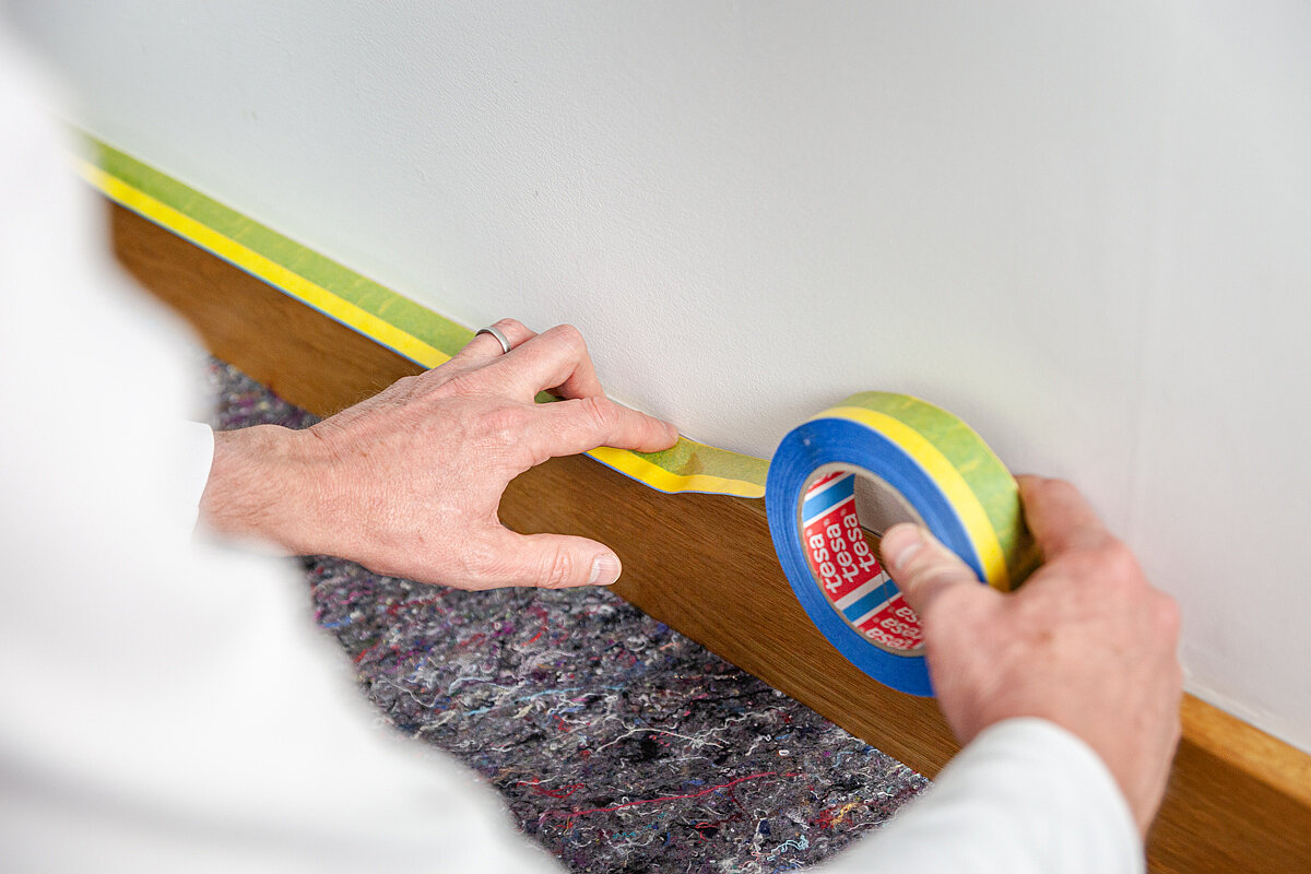 »tesa Professional 4455 Silikon Präzisionskrepp« ist in der Kombination von Washi-Papier und Silikonbeschichtung ein Newcomer auf dem Markt. Das Produkt ermöglicht so die Verklebung auf Silikon und anderen schwer zu beklebenden, schmutzabweisenden Oberflächen und liefert dabei die scharfen Farb- und Lackkanten, die man von einem »Präzisionskrepp« erwartet. Die dritte Neuheit ist das selbstklebende Schutzpapier »tesa Professional 74922«. Dabei handelt es sich um ein Kraftpapier in Profiqualität, das einen wirksamen Schutz vor Farbspritzern und Kratzern auf verschiedenen Oberflächen bietet. Es lässt sich mühelos anbringen, neu positionieren und rückstandsfrei entfernen – ideal für den effizienten Schutz von Böden, Treppen und Fensterbänken.