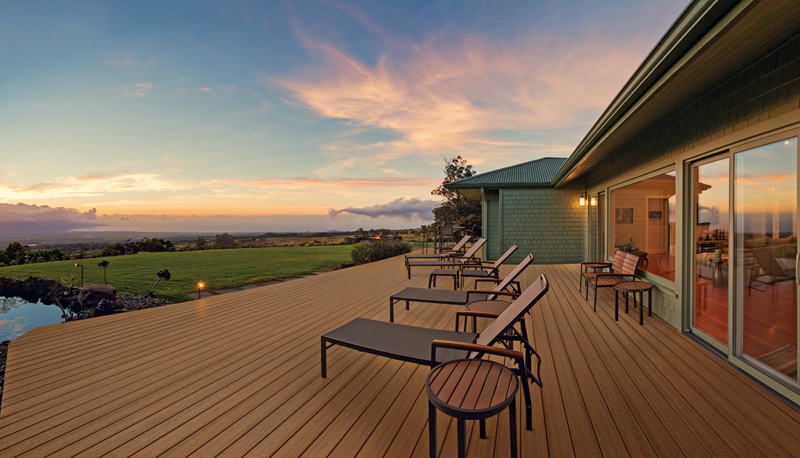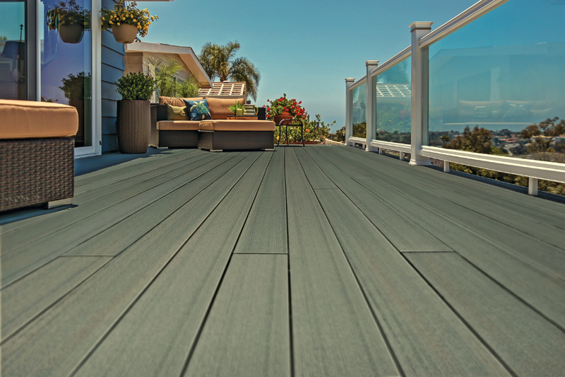 Charakteristisch für cWPC -Terrassendielen von TimberTech ist die Polymer-Ummantelung des Verbundwerkstoffkerns an allen vier Seiten einschließlich der Nut. Das hat zur Konsequenz, dass Feuchtigkeit im Freien auch an der Unterseite nicht eindringen kann. Die Polymerschutzschicht macht die Dielen laut Hersteller außerdem über Jahrzehnte haltbar, strapazierfähig und pflegeleicht. Sie reißen nicht auf, sind splitterfrei und bleichen nicht aus, heißt es in einer Mitteilung des Unternehmens.