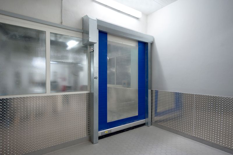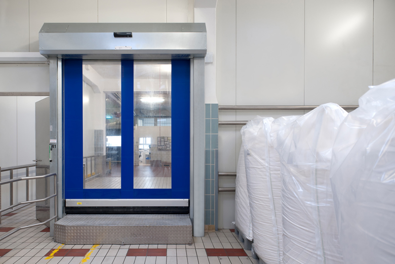 In anderen Abteilungen der regionalen Großmolkerei halten die schnellen Tore von EFAFLEX einen Überdruck. So dürfen zum Beispiel Hilfsstoffe, die für die Pharmaindustrie hergestellt werden, nicht durch fremde Partikel verunreinigt werden. Der Luftstrom muss also stets aus dem Raum entweichen, wenn sich ein Tor öffnet. Damit stellt er eine Barriere gegen eindringende Stoffe her.
