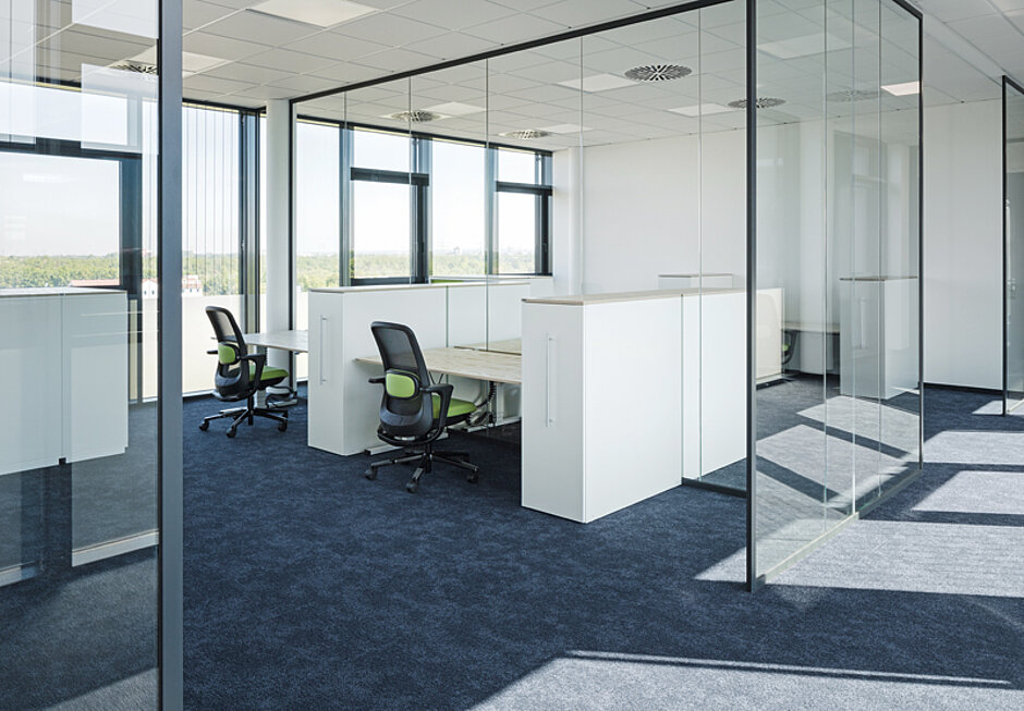Die neue Firmenzentrale des Grünen Punktes bietet den Mitarbeiterinnen und Mitarbeitern auf fünf Etagen ein ausgeklügeltes Open-Space-Konzept mit unterschiedlichen Bereichen für ungestörtes Arbeiten, Netzwerken und Erholung. Um einen mit Birken bepflanzten Innenhof herum erhebt sich der großzügig verglaste, lichtdurchflutete Neubau mit 5 400 m2 Bürofläche. Der wohldosierte Mix aus Viererinseln, Einzelbüros und Besprechungsräumen fördert Kollaboration und Konzentration nach Maß.