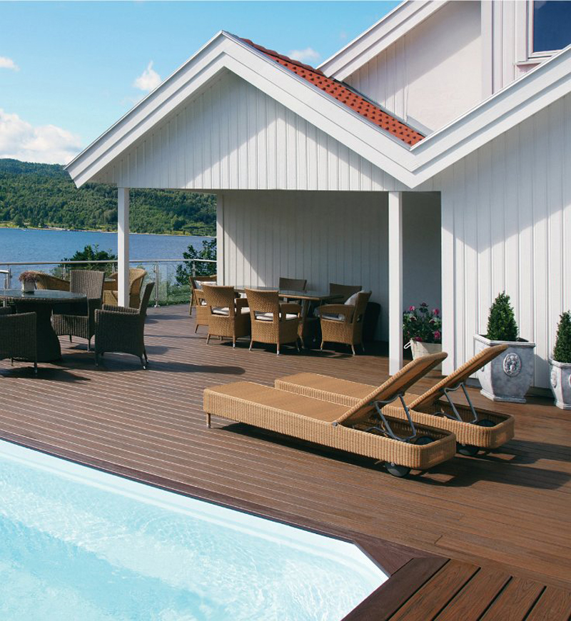 In letzter Zeit würde zunehmend auch das Argument der Nachhaltigkeit überzeugen. Der hohe Anteil an Recyclingmaterial bei Trex bedeute zum Beispiel, dass für die Produkte weder Bäume gefällt noch fossile Rohstoffe verschwendet werden. »Besonders günstig für die Ökobilanz ist außerdem die hohe Lebensdauer der Dielen, die ohne aufwendige Wartung 25 Jahre oder länger halten. In diesem Zeitraum müssen andere Bretter bereits durch neu produzierte Produkte ausgetauscht werden, was zu zusätzlichem Ressourcenverbrauch und zusätzlichen Emissionen führt«, so Kaßmann. Hinzu komme, dass ohne schädliche Chemie produziert werde. Auch entfallen Pflege- und Konservierungsmittel, die schädliche Stoffe in die Umwelt abgeben können.