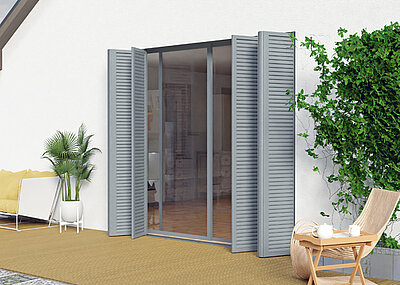 Mit den neuen Schiebeläden von TS-Aluminium entstehen unter einem Terrassendach wind- und sonnengeschützte Ruhezonen. An beliebigen Seiten auch nachträglich ergänzbar, lässt sich so noch mehr Komfort schaffen. Außerdem fügt sich die Konstruktion harmonisch an das Terrassendach an.