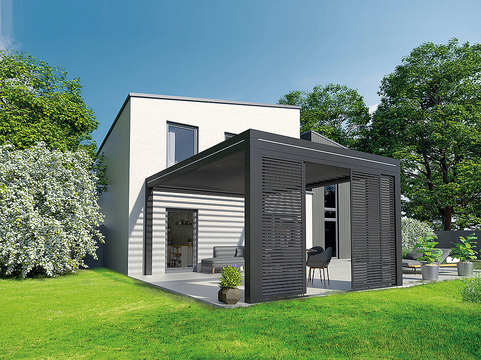 Als erstes Überdachungssystem ist es laut Hersteller außerdem möglich, das Lamellendach mit einem Flachdach zu kombinieren. Weitere Extras sind unter anderem eine LED-Beleuchtung und Heizsysteme. Der Farbgestaltung des Lamellendaches sind dank der werkseitigen Pulverbeschichtung keine Grenzen gesetzt – und die Profile kommen gleich im Wunschfarbton auf die Baustelle.
