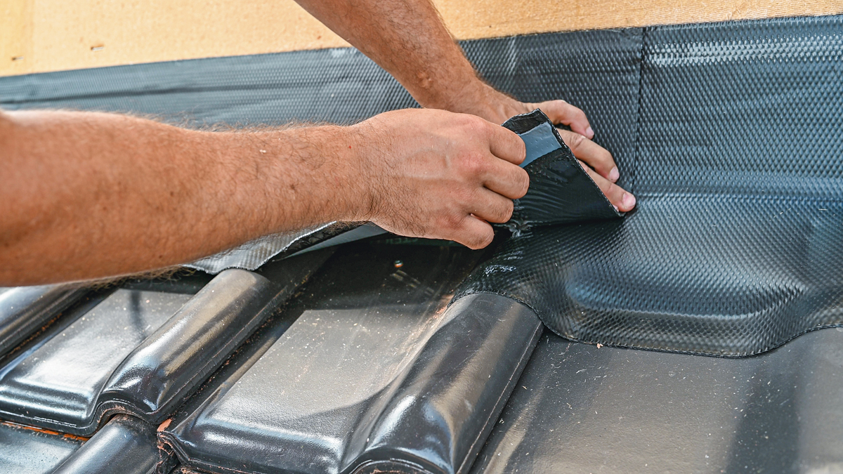Mit einer Dicke von nur 6 mm verbessert »MultiVap Reflex Plus« den Dämmwert der gesamten Konstruktion, ohne diese zusätzlich zu erhöhen. Gemäß EN 13501-1 ist die multifunktionale Unterdeckbahn schwer entflammbar B-s1,d0 und verzögert das Übergreifen von Feuer in das Gebäude. Dabei ist die 1,12 m breite Bahn auch dank eines integrierten Klebestreifens im Überlappungsbereich einfach und schnell zu verlegen. Nicht zuletzt lässt sich die »MultiVap Reflex Plus« mit baustellenüblichen Werkzeugen zuschneiden und befestigen.