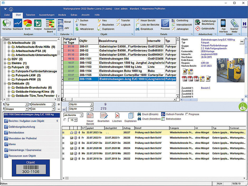 Der Gesetzgeber gibt für fast alle Betriebsmittel zahlreiche detaillierte Arbeitsschutzregelungen und Prüfrichtlinien vor. Gemäß Unfallverhütungsvorschrift der Berufsgenossenschaften (DGUV Vorschrift 3) betrifft dies insbesondere elektrische Anlagen und Geräte. Unter anderen wird die Sicherheit auf Baustellen auch durch die Baustellenverordnung (BaustellV) geregelt. Wiederkehrende Prüfungen sind daher unabdingbar, um jegliche Gefährdungen auszuschließen. Sämtliche Normen, Regelwerke und Prüfintervalle werden durch den Wartungsplaner berücksichtigt, heißt es in einer Mitteilung des Herstellers. Das Tool entspreche den Anforderungen der DIN EN ISO 9001 sowie den Empfehlungen der Berufsgenossenschaften. Zudem müssen die Prüfungen und ihre Vorgänge sowie Ergebnisse im Schadensfall auch sorgfältig belegt und dokumentiert werden. Der Wartungsplaner gewährleistet laut Hoppe hierbei Prüfprotokolle, die sämtliche Vorgaben erfüllen.