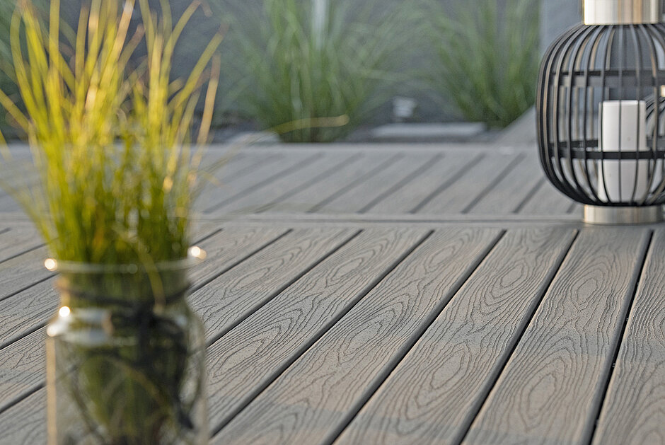 Haltbar wird die Diele von Trex durch eine ausgewogene Materialmischung und einen speziellen Schutzmantel. Der Mantel wird im sogenannten Koextrusionsverfahren unablösbar mit dem Dielenkörper verschmolzen und schützt ihn auf drei Seiten vor Witterung und Abnutzung. Auf der Unterseite ist der Mantel offen, damit sich der Dielenkern bei Temperaturwechseln ausdehnen und zusammenziehen kann. Quasi als willkommener Nebeneffekt ermöglicht der Mantel eine besonders naturnahe, dreidimensional gemaserte Holzoptik. Jede Diele erhält so eine besonders edle Ästhetik.