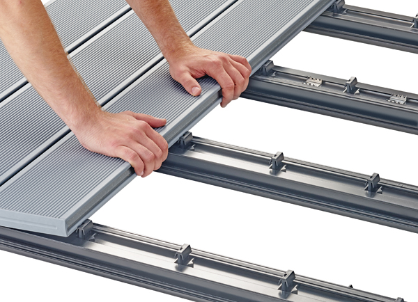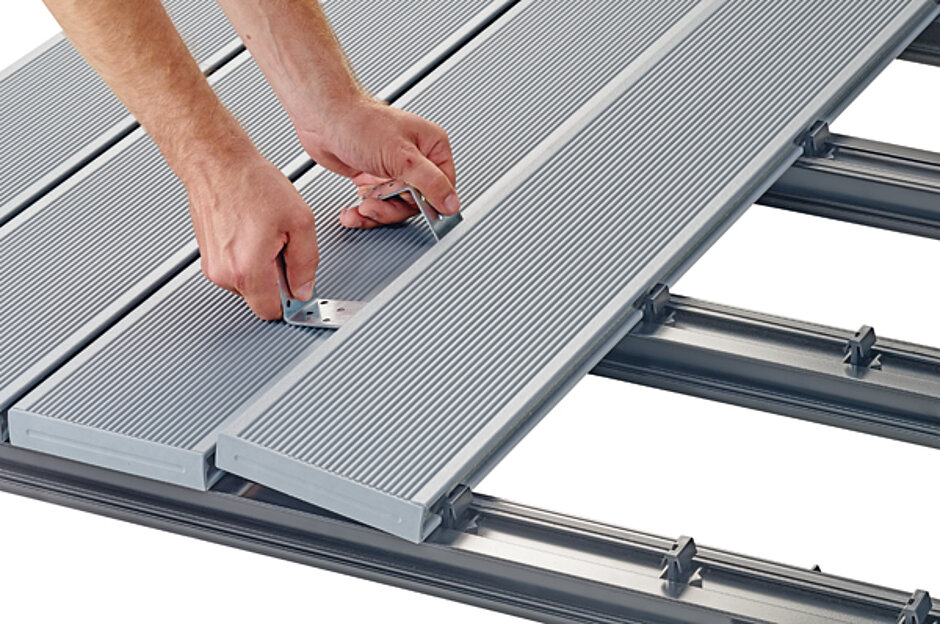 So ist weder bei der Unterkonstruktion noch beim Decking selbst Bohren oder Schrauben nötig. Das Click-System macht das Verlegen der Dielen mit nur einem Befestigungsclip möglich. So wird gewährleistet, dass die Dehnfugen im Laufe der Jahre konstant bleiben.