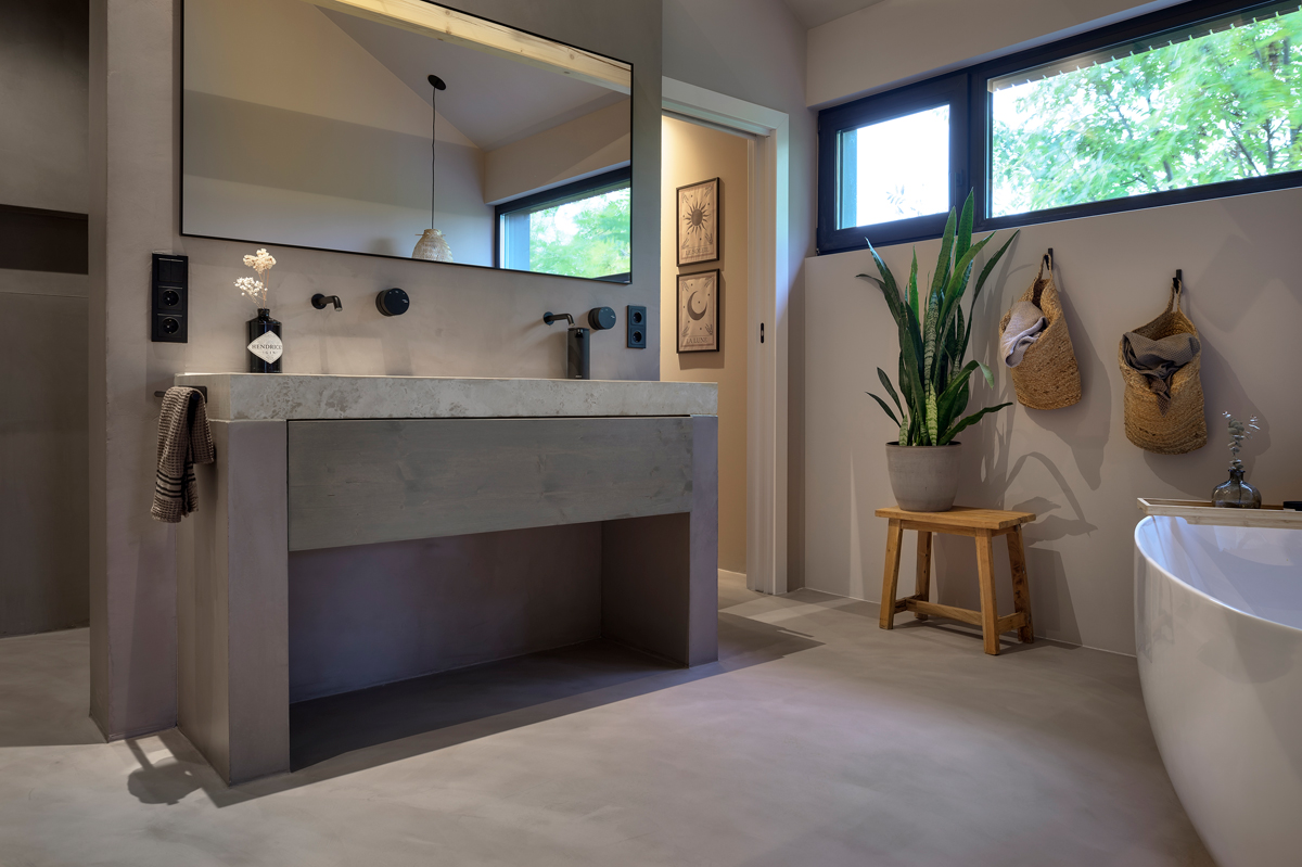 Der pastöse, flexible Belag besteht laut Hersteller ausschließlich aus natürlichen Mineralien wie Zement, Farbpigment und Wasser. Einmal aufgespachtelt, hält er nicht nur in trockenen Räumen, sondern auch in Küchen, WCs oder Bädern der Nässe stand, heißt es in einer Mitteilung von Uzin Utz. Er ist zudem in Kombination mit Fußbodenheizungen einsetzbar, UV-stabil und verschleißfest. Die Premium-Klasse des Emicode-Siegels, Emicode EC 1 plus, ein exklusives Label für besonders emissionsarme Produkte, bescheinigt seine Eignung für den Einsatz in belebten Räumen: »Der emissions- und lösemittelfreie Belag eignet sich besonders gut für Wohnhäuser, Einzelhandelsgeschäfte, Büroräume und die Gastronomie«, erklärt Frank Wittkowski, Leiter Corporate Business Development bei Uzin Utz. Dank seiner geringen Aufbauhöhe bietet er sich außerdem für Renovierungsarbeiten an und erzeugt dabei ein robustes und gleichzeitig modernes Aussehen in zwölf möglichen Farben.