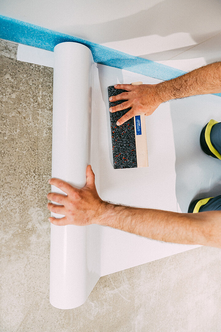 Als doppelseitig klebende Spezialfolie wird UZIN Plurafilm Hydro einfach auf dem Untergrund ausgerollt – auf Beton oder Zementestrich mit erhöhter Restfeuchtigkeit. Der elastische oder textile Bodenbelag in Fliesen, Planken oder Bahnen kann unmittelbar nach der Verlegung verklebt, verfugt oder verschweißt werden. Wartezeiten entfallen komplett, die offene Zeit ist unbegrenzt. Die Bodenbeläge sind sofort begehbar und nutzbar. Das ergonomische Handling durch einfaches Ausrollen macht das System besonders verarbeiterfreundlich. Bei korrekter Anwendung und nicht sichtbarer Feuchtigkeit entfällt zudem die Feuchtemessung. Dies reduziert den Zeit- und Kostenaufwand auf Baustellen erheblich.