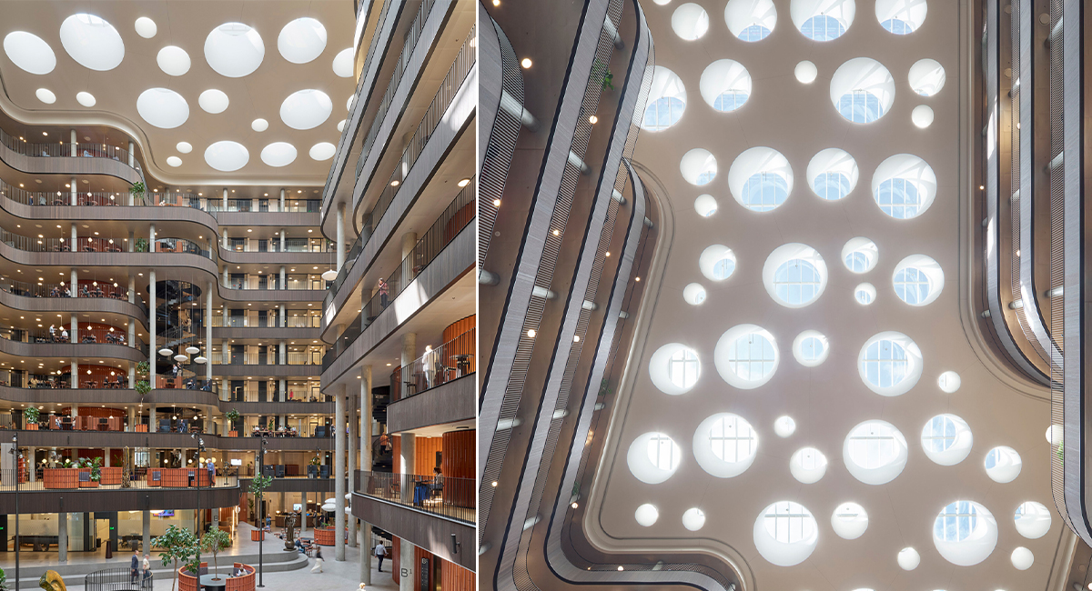 Auf dem Areal des ehemaligen Postamts im Zentrum Kopenhagens entstand ein beeindruckender Bürokomplex mit einer Gesamtfläche von 73 000m². Die Danske Bank, Dänemarks größtes Finanzinstitut, errichtete dort ihren neuen Hauptsitz, in dem bis zu 6 000 Menschen Platz finden. Das architektonische Konzept von Lundgaard & Tranberg fokussiert sich nicht nur auf moderne Arbeitsumfelder, sondern verfolgt darüber hinaus einen nachhaltigen und inspirierenden Ansatz. Auch dank des Einsatzes von »Velux Modular Skylights« ist ein energieeffizientes Bürogebäude entstanden, das gleichzeitig eine angenehm helle Umgebung schafft und Tageszeiten im Innern erlebbar macht.