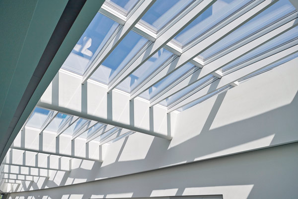 Für Bauprojekte im gewerblichen und öffentlichen Sektor präsentiert Velux für »Modular Skylights« eine neue Designvariante. Das System für großflächige Tageslichtöffnungen in flachen und flach geneigten Dächern wird um eine innovative Anwendungsmöglichkeit erweitert. Zudem stellt Velux die Ausführung als NRWG (Natürliches Rauch- und Wärmeabzugsgerät) vor – und verspricht signifikant verbesserte Leistungsfähigkeit der »Modular Skylights« in diesem Bereich.
