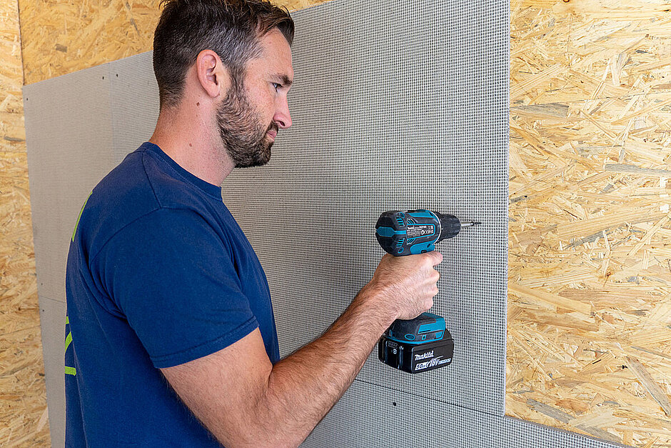 Weil sie nur halb so viel wie zementgebundene Trägerplatten wiegen, ist auch das Handling leichter. Zuschnitte erfolgen präzise und staubarm mit Cutter und Lineal oder Holzsäge. Mit Edelstahl-Fassadenschrauben oder -klammern werden die Platten mit der Holz-Unterkonstruktion verbunden. Dank der offenporigen Oberfläche (»VeroGrip«-Technologie) bleibt auch der nächste Verarbeitungsschritt einfach und sicher: Die maximale Haftung der Platte lässt Verputzen ohne Grundierung zu. Übrigens: »VeroBoard AllStar« ist als Allround-Leichtbauplatte auch im Innenausbau verwendbar. Im Holzbau kann sie direkt auf OSB oder Holzständerwerk befestigt werden.