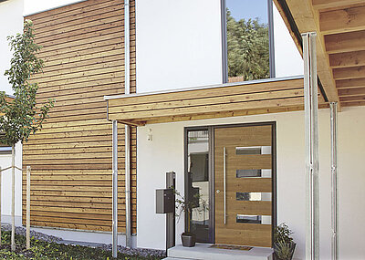 Das Außendekor der Haustür lässt sich – wie alle Varianten der »Elementica«-Serie – nach individuellen Wünschen gestalten. Zur Verfügung stehen über 50 Dekore aus verschiedenen Materialien wie massives Echtholz, Keramik mit verschiedenen Designoberflächen, Naturstein und Aluminium. Auch Applikationen sowie Lichtausschnitte können frei nach persönlichem Geschmack und passend zur Fassade ausgewählt werden. Mit dem digitalen Versco-Haustürdesigner können Fachhändler und Endverbraucher online anhand eines Originalfotos des betreffenden Hauses verschiedene Türvarianten ausprobieren und zusammenstellen. Das Besondere dabei: Dank des speziell von Versco entwickelten Füllungswechselsystems kann das Außendekor jeder Haustür auch nach dem Einbau problemlos ausgetauscht werden.