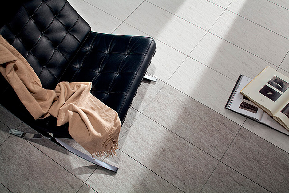 Passendes Stäbchenmosaik (netzverklebt auf 30 x 60 cm) lässt sich sowohl dekorativ als Bordüre als auch vollflächig einsetzen. Die Formate und Farben der Serie »Pietra«: Bodenfliesen in den Modulformaten 60 x 60 und 30 x 60 cm, in den Farbenstellungen Hell- und Mittelbeige sowie Hell- und Mittelgrau. Stäbchenmosaik sowie Stufenfliesen und Sockel gibt es passend zu allen vier Farben. Ästhetik, Funktionalität, Vielseitigkeit_ Groß ist die Auswahl an Vorzügen, auf die »Rock« verweisen kann_ Die glasierten Feinsteinzeugfliesen beeindrucken mit ihren Möglichkeiten im Innen- und Außenbereich, in Wohnräumen und öffentlichen Einrichtungen, auf Fußböden und an Wänden. Farben, Formate und Oberflächen vereinen sich zu einer Serie mit außerordentlich großer Gestaltungsfreiheit.