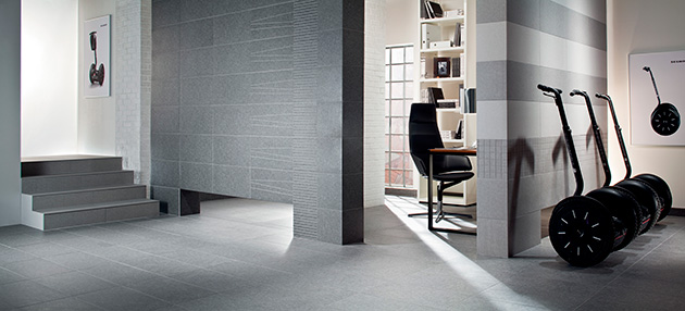 Mosaike in Form von Quadraten oder Streifen und Dekorfliesen mit diagonalen Schnittlinien regen an zu spannenden Konzepten. Die Granitoptik der Fliesen wird von RAKO sowohl in matter Standard- als auch in Lappato-Ausführung (also teilpoliert) angeboten. Passende Stufenfliesen und Sockel runden das Programm ab. Für zuverlässige Sicherheit sorgt die Rutschhemmung »R10A« der Standardoberfläche. Formate und Farben der Serie »Rock«: Bodenfliesen in den Formaten 60 x 60, 30 x 60 cm und 30 x 30 cm, in den Farben Weiß, Elfenbein, Hellgrau, Dunkelgrau und Schwarz mit Standard- und mit Lappato-Oberfläche. Streifenmosaik und quadratisches Mosaik (netzverklebt auf 30 x 60 cm) sowie Dekorfliesen mit diagonalen Schnittfugen in 30 x 60 cm. Stufenfliesen und Sockel passend zu allen Farben.