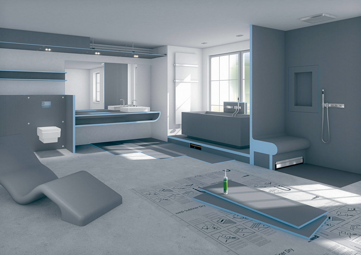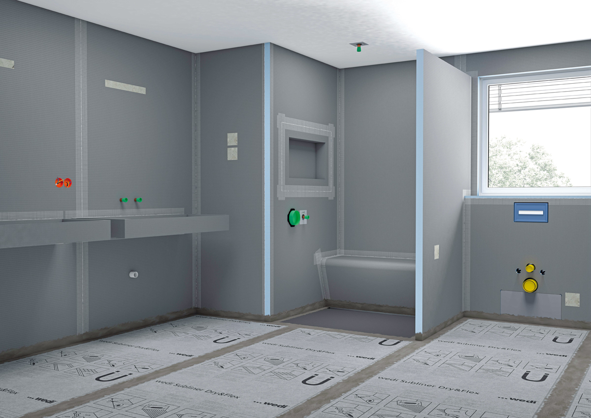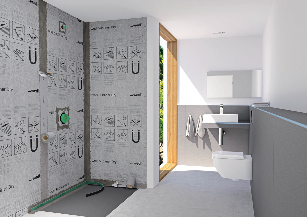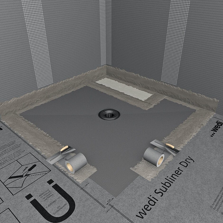 Die Dusche muss, wie alle vom Wasser beanspruchten Bereiche, mit einer Verbundabdichtung ausgeführt werden. Wedi bietet für alle Situationen die passende Lösung: Ob Wedi Bauplatte, bahnenförmige Abdichtung mit »Wedi Subliner«, Bodenelement für bodengleiche Dusche, Dichtband, Dichtschlämme oder Kleb- und Dichtstoff – mit den normkonformen Abdichtungssystemen ist der Verarbeiter beim Abdichten des Duschplatzes auf der sicheren Seite, so Wedi.