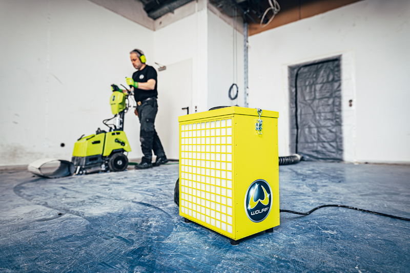 »Mit dem Einsatz des ›LR 690‹ ist das Arbeiten auf der Baustelle sicherer und angenehmer. Nachbarräume bleiben sauber und müssen nicht zusätzlich gelüftet oder gereinigt werden«, meint Denis Haberstroh, Marketingmanager von Wolff. Der »LR 690« verfügt über eine automatische Volumenstromüberwachung und arbeite fast geräuschlos. Der Luftreiniger von Wolff wird zusammen mit einem Compact-Luftschlauch (Durchmesser 125 mm, Länge 6 m) sowie zehn Vorfiltermatten G3, einem »HEPA-Filter H14« und einer Staubtür mit den Maßen 2,3 x 1,3 m geliefert. Weiteres Zubehör kann der Kunde individuell zusammenstellen.