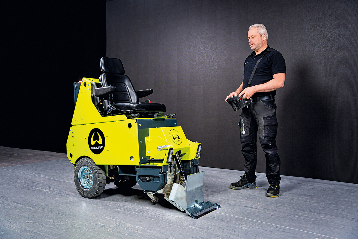 Bevor Bodenbeläge verlegt werden, muss der Untergrund vorbereitet und müssen vorhandene Beläge rückstandsfrei entfernt werden. Diese Aufgabe übernehmen Stripper, die der Maschinen- und Werkzeugspezialist Wolff aus Ilsfeld selbst entwickelt und herstellt. Mit dem neuen Bodenstripper »Maverick« präsentiert Wolff zu Beginn des Jahres eine kompakte und wendige Maschine, die das bestehende Stripper-Sortiment ergänzt. Der »Maverick« sticht dabei durch sein agiles Format von weniger als 60 cm Breite hervor und bedient den kleineren Objektbereich bei der Entfernung von textilen und elastischen Belägen sowie Parkett und Sportbelägen optimal.