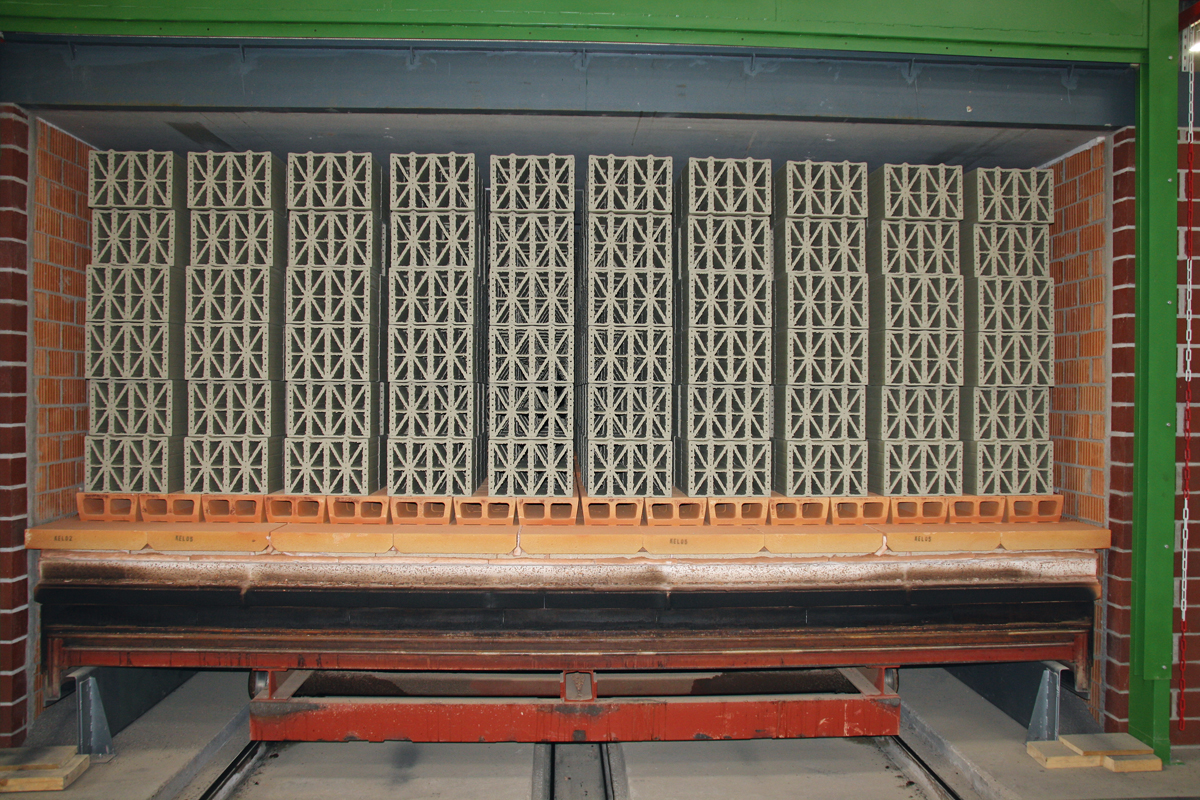 Und dieser läuft in einem durchdachten, kontinuierlichen Kreislaufsystem ab. Wir stehen an einem Band, das die von einer Strangpresse geformte, etwa 40 Grad warme, beige-grüne Ziegelmasse in einem Endlosstrang zur Schneidemaschine befördert, wo sie in einzelne Ziegel geschnitten wird. Anschließend geht es dann für 24 Stunden bei 110 Grad in den Trockner, wo den Ziegeln die Feuchtigkeit entzogen wird und sie ihr Endmaß erreichen. Vollautomatische Ofenwägen fahren die getrockneten Ziegel dann zum Brennofen – hier werden die Ziegel bei etwa 950 Grad 13 Stunden lang gebrannt. Der von 110 Gasbrennern aufgeheizte Brennofen läuft das ganze Jahr durch, er liefert auch die Abwärme für den Trockner. »39 Ofenwägen können gleichzeitig in den Brennofen geschickt werden«, so Michael Kellerer. Auf diese Weise produziert das Unternehmen sein komplettes Produktportfolio. Die Anlage ist derzeit so ausgelastet, dass Kellerer den Bedarf fast nicht decken kann, der Absatz liege über dem Vorjahr. Das großflächig angelegte Außenlager, in dem die gebrannten und anschließend eingeschweißten Ziegel zwischengelagert werden, ist an diesem Tag fast leer. Kellerers Hauptabsatzgebiet ist das oberbayerische Fünf-Seen-Land und der Großraum München. Hier, in einer der wohlhabendsten Regionen Deutschlands, ist von einer rückläufigen Bautätigkeit noch nichts zu spüren.