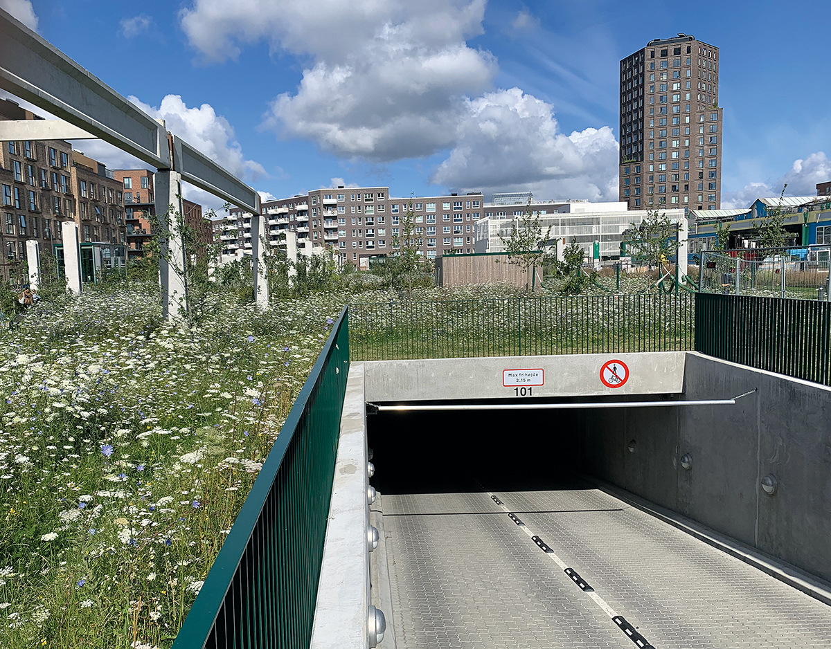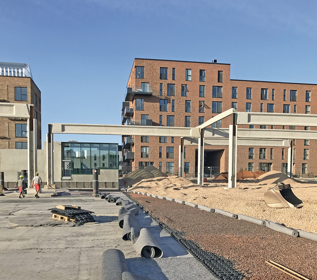 Der dänische Begriff »Grønttorvet« heißt wörtlich übersetzt so viel wie »Grüner Platz«. Von 1958 bis 2016 war Grønttorvet im Stadtteil Valby der Marktplatz für Kopenhagens Floristen und Gemüsehändler. Weil dieser Standort zu klein geworden ist, findet der Markt seither außerhalb von Kopenhagen statt. Eine bedeutsame Aufgabe war es in der Folge, das frei gewordene Areal in Valby zu revitalisieren. Ein neuer, moderner Wohnbezirk sollte entstehen. Ein erklärtes Ziel dabei war, bezahlbaren Wohnraum zu schaffen. Das ist hier gelungen mit nunmehr 3 000 Wohnungen in einer Mischung aus Eigentums- und Mietwohnungen sowie Gemeinschaftswohnungen, Senioren- und Studentenwohnungen. Elementares Ziel war zugleich eine nachhaltige und lebenswerte Stadtgestaltung. Und dazu gehört in allererster Linie eine grüne Gebäudearchitektur sowie Grünflächen im direkten Wohnumfeld. Daher wurde von der Projektentwicklergruppe FB Gruppen auch eine begrünte Tiefgaragenlösung favorisiert, anstatt Parkhäuser in der Gegend zu bauen.